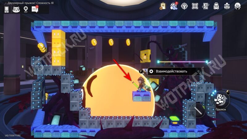 Оказавшись на тайном уровне, соберите сундук и двигайтесь влево. Используйте линии гравитации для перемещения между полом и потолком и избегайте шипов. Нажмите на рычаг и откройте проход.