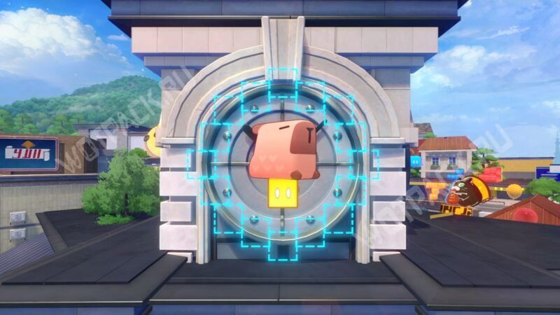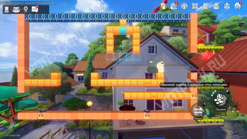 Далее продолжайте двигаться вправо, забираясь всё выше по невидимым платформам, пока не увидите рычаг и Свинюшу на эфемере. Выпустите существо и получите достижение «Вариация рая: Песнь капибары».