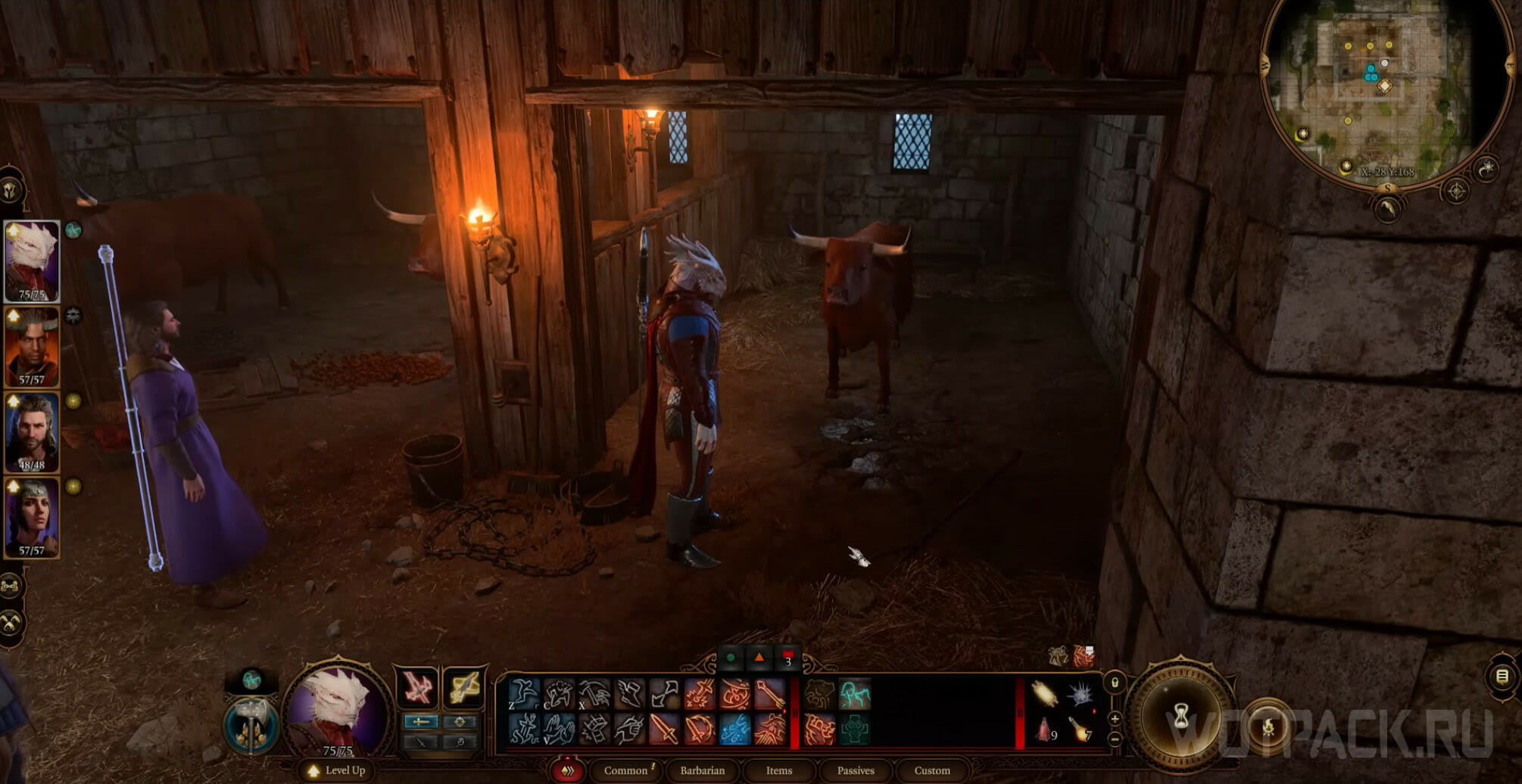 В следующий раз странный вол в Baldur’s Gate 3 встретится путникам во 2 акте, в таверне «Последний свет». Направляйтесь в конюшню, расположенную рядом с кузницами. Для разговора с животным вновь выпейте нужное зелье или воспользуйтесь умением Уилла.