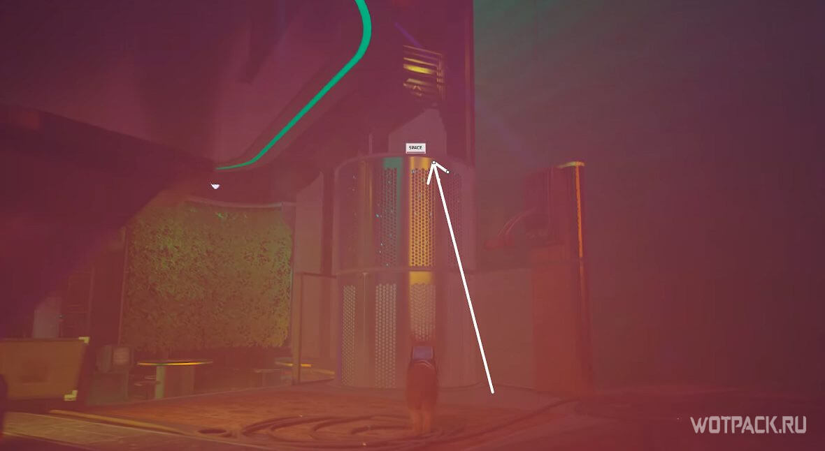 После того как столб с голограммой опустится, нужно быстро запрыгнуть на него и ждать, пока диджей снова активирует механизм. Поднявшись наверх, запрыгивайте на выступ и заходите на балкон управления.