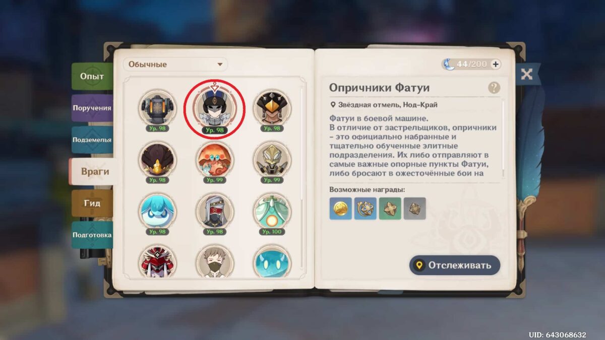 - Потрёпанный/безупречный/заиндевевший мандат падает после победы над обычными противниками региона воров. Опричники Фатуи — особые войска северного государства, отправленные в Нод-Край. Преимущественно встречаются на острове Паха.