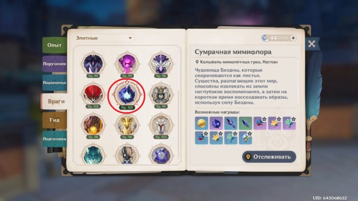 - Преломляющий бутон, ошеломляющий широколист и иллюзорную листовую спираль можно получить в Очканатлане с Сумрачных мимифлор. Это элитные противники с особой механикой накопительного щита, который лучше всего ломается героями из Пиро региона.