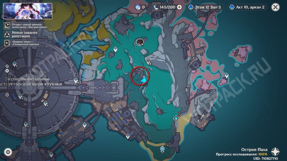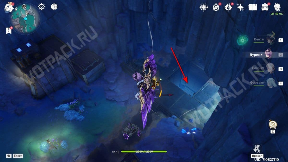 Чтобы к нему попасть, от статуи Архонтов на острове или подземелья артефактов «Покрытая инеем машинерия» двигайтесь на север по равнине. Дойдите до обрыва, где внизу заметите пещеру с квадратным спуском вниз.