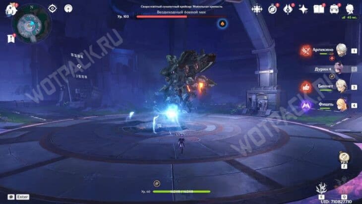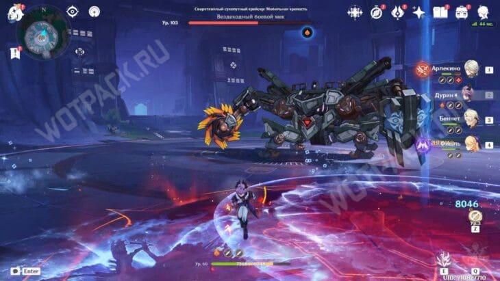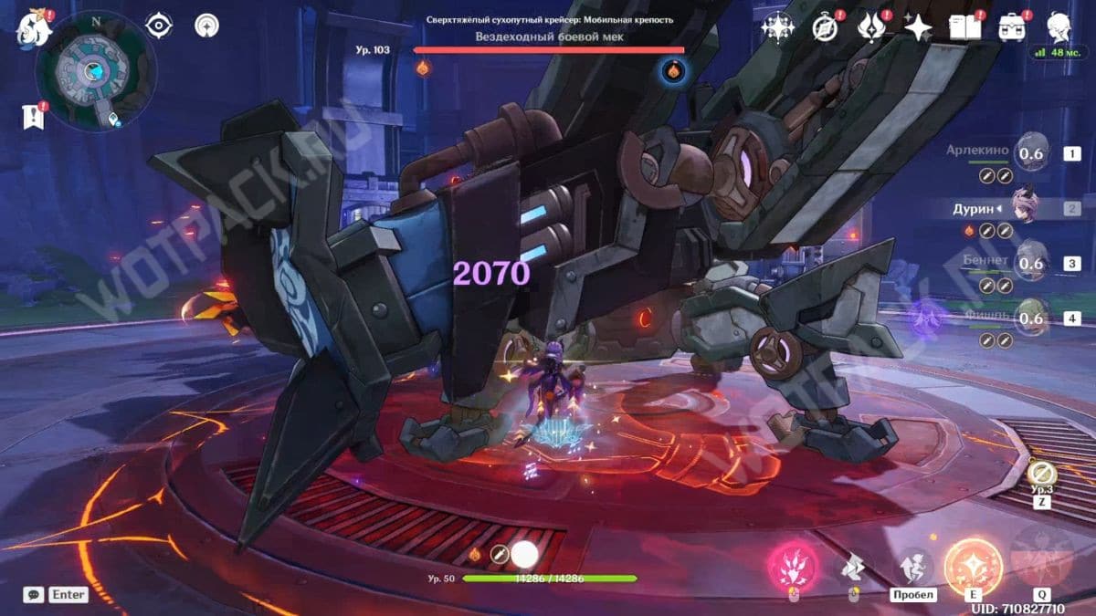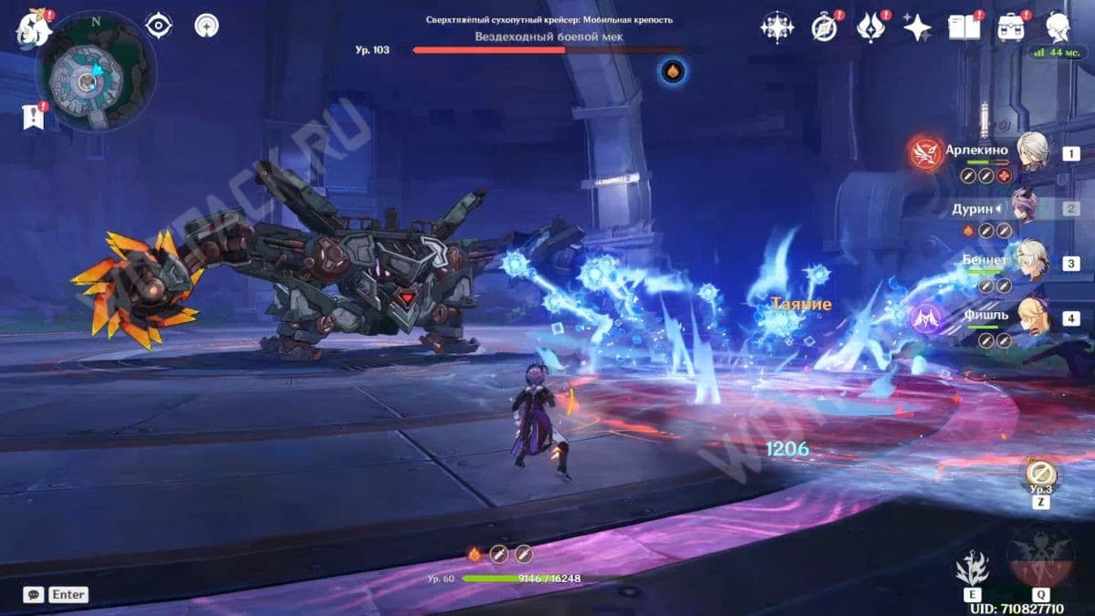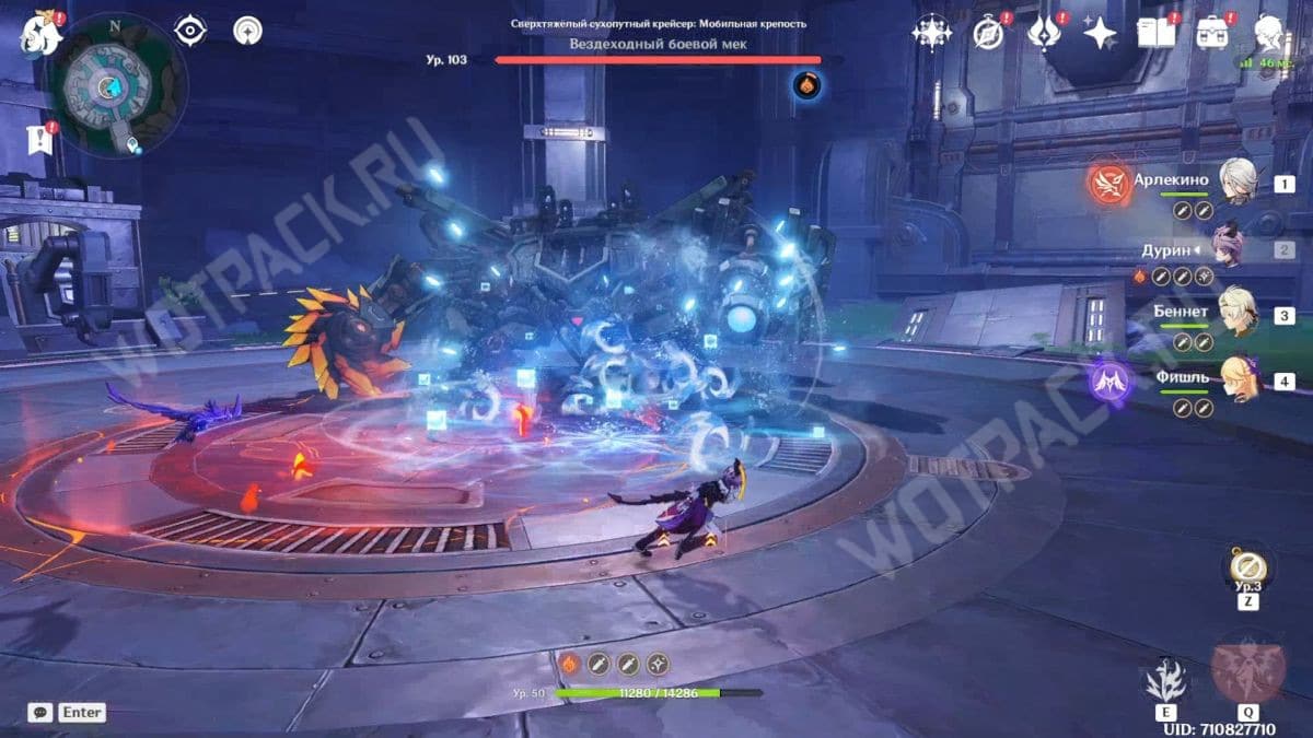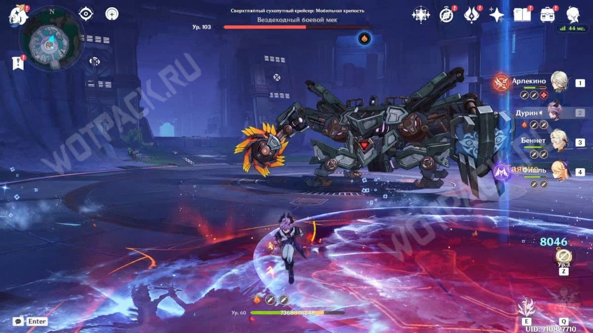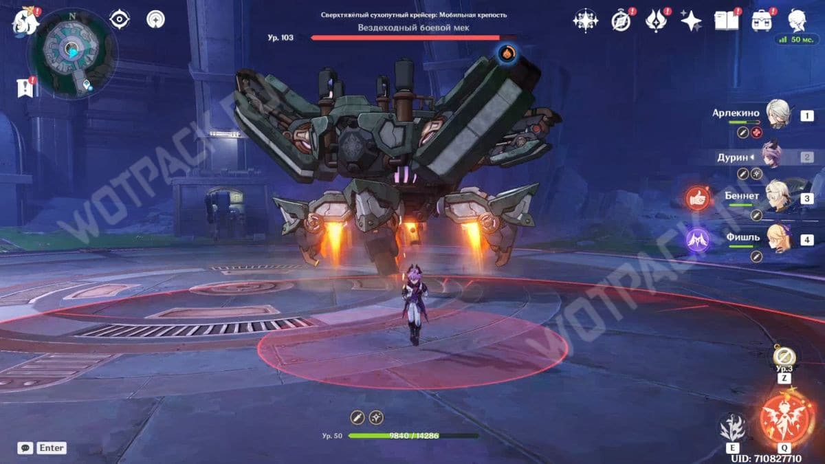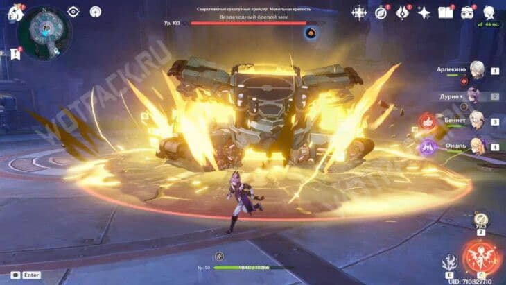 Боевая машина имеет много ударов по площади, поэтому используйте героев поддержки, чтобы не тратить время на уклонение. Однако не берите лекарей с наложением Гидро эффекта, например, Барбару или Кокоми, поскольку в этом случае враг заморозит активного героя при попадании.