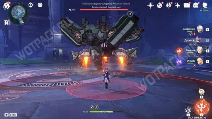 После этого активирует Пиро конечность и обрушивается на арену, атакуя огненным дамагом.