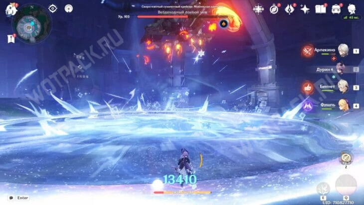 Крейсер имеет высокие резисты, которые следует понизить, перегревая его и снимая Крио щит. С этим справляются только герои огненной стихии, поэтому обратите внимание на соответствующего главного ДД или нескольких саб-дд.