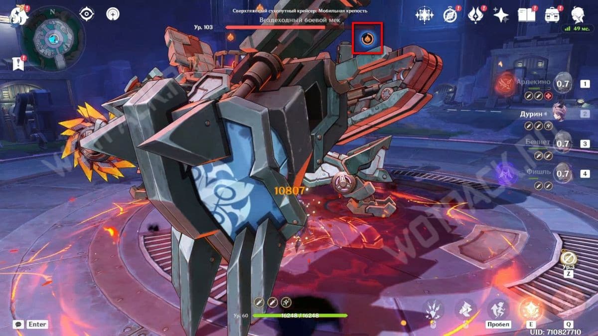 Поскольку снятие барьера дает не только существенное понижение сопротивлений, но и снимает 30% HP врага, рекомендуется не игнорировать механику и успеть убрать щит за 18 сек.