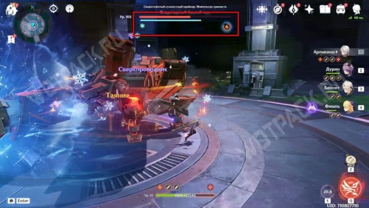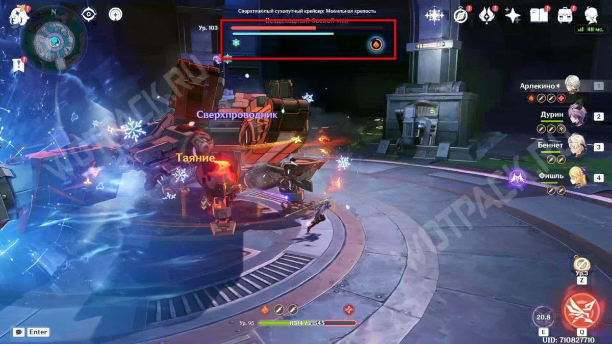 Если враг получит много Пиро атак, он активирует Крио щит и начинает охлаждаться. Снимите барьер, чтобы прервать это состояние и снять часть HP.