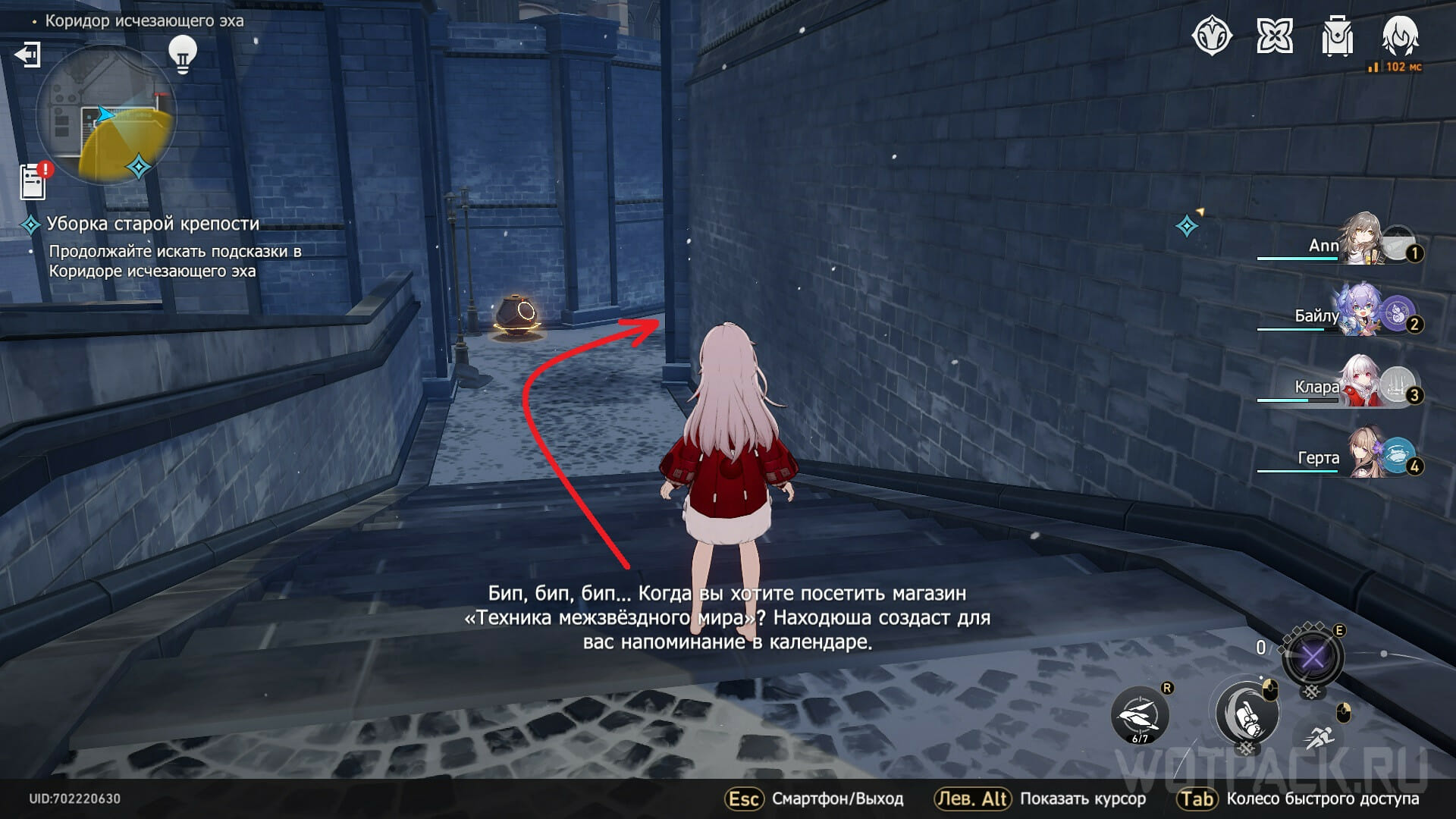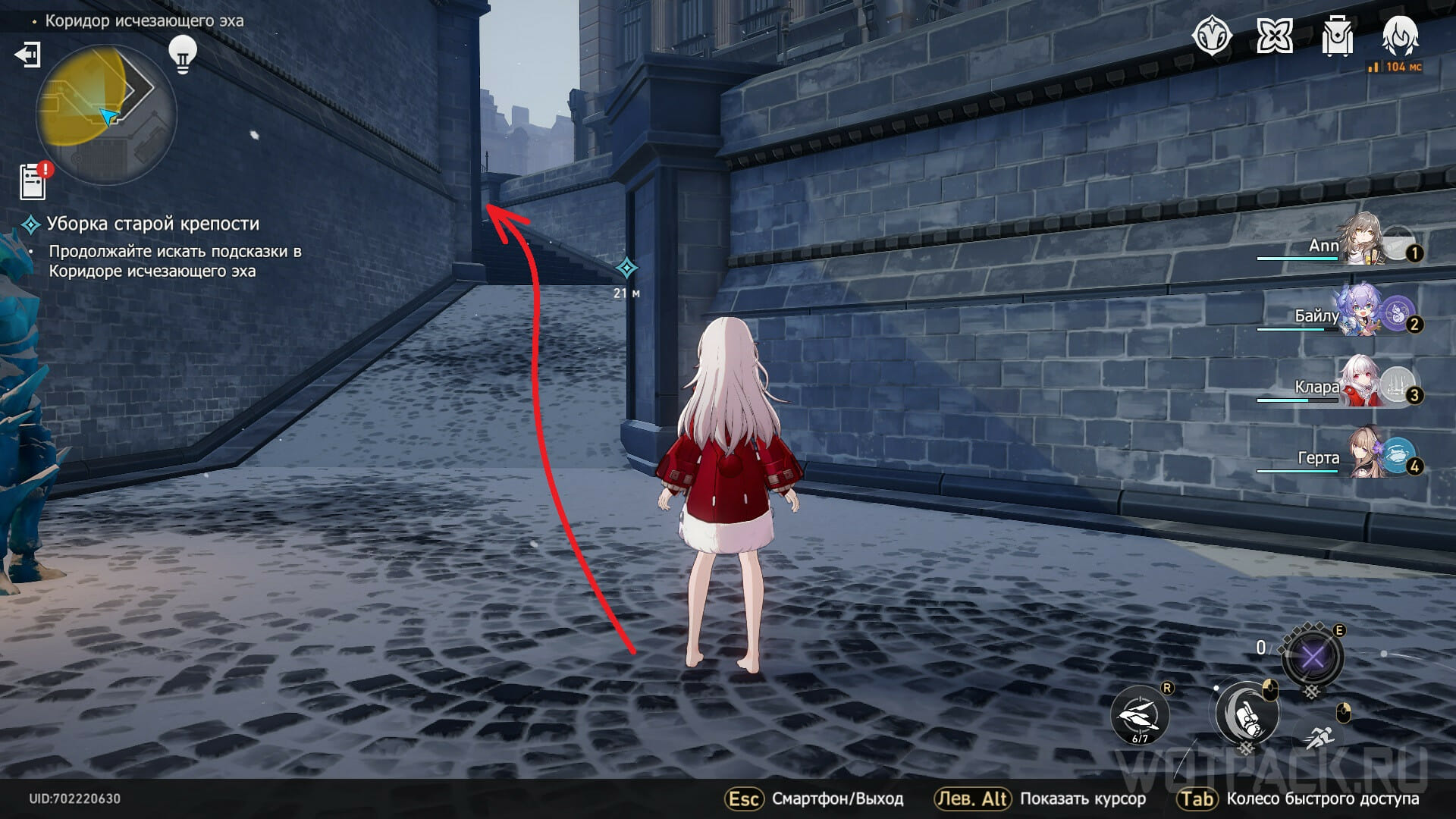 Поговорите с Пелой и направляйтесь в Коридор исчезающего эха