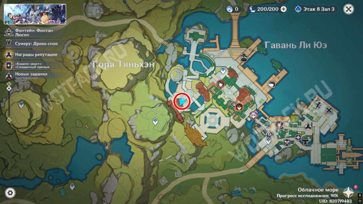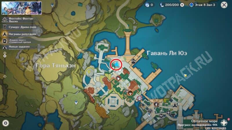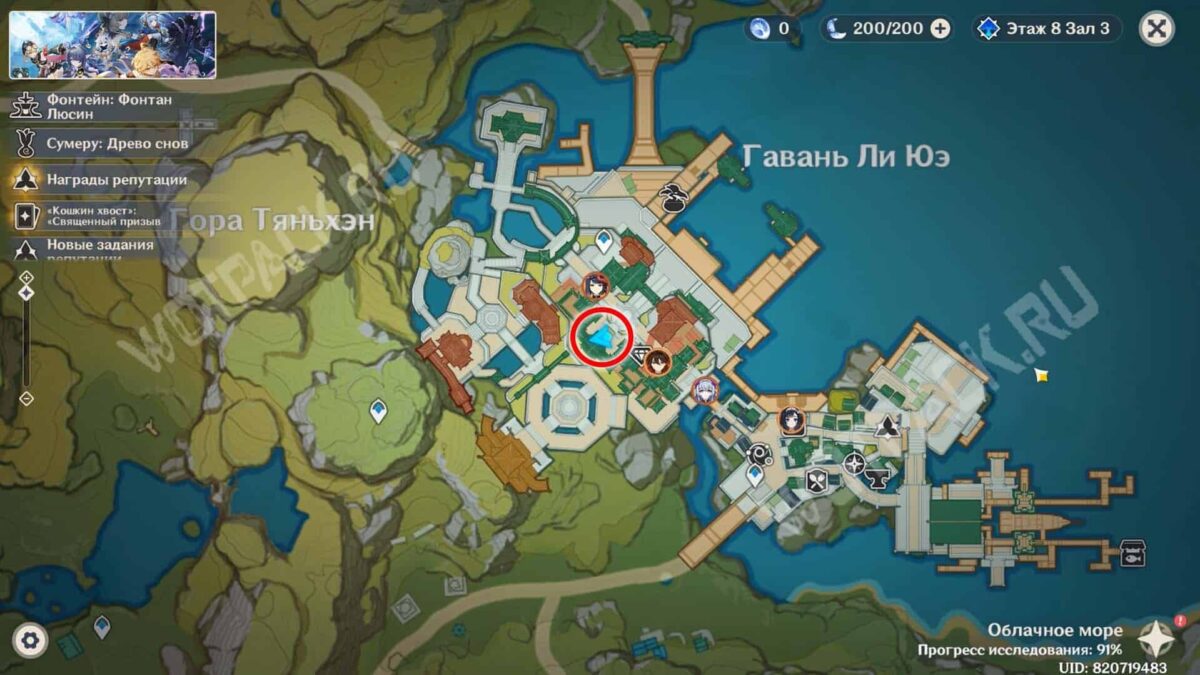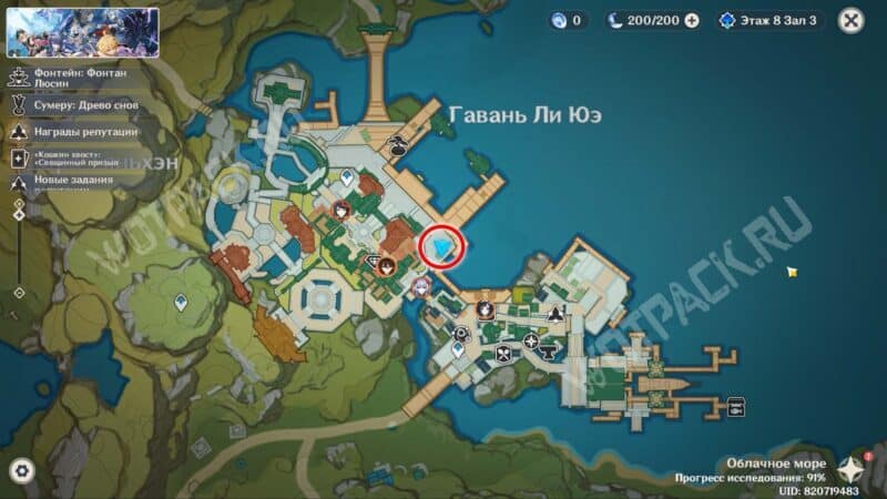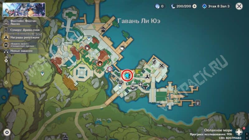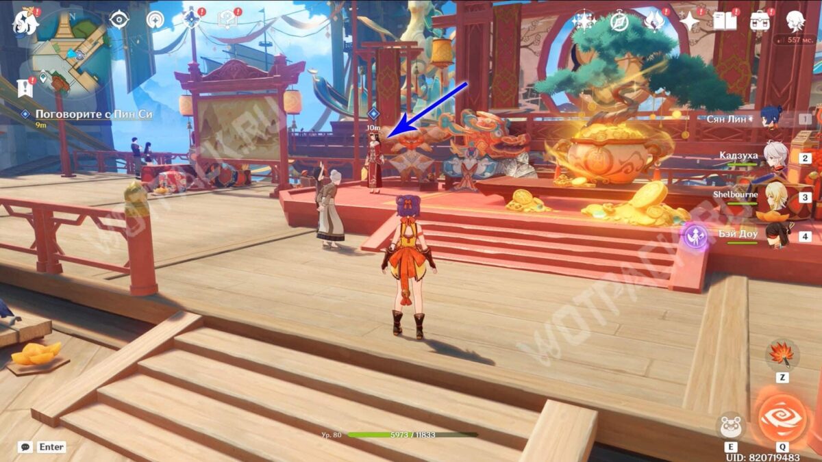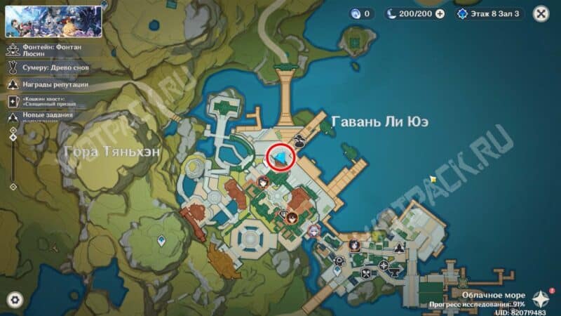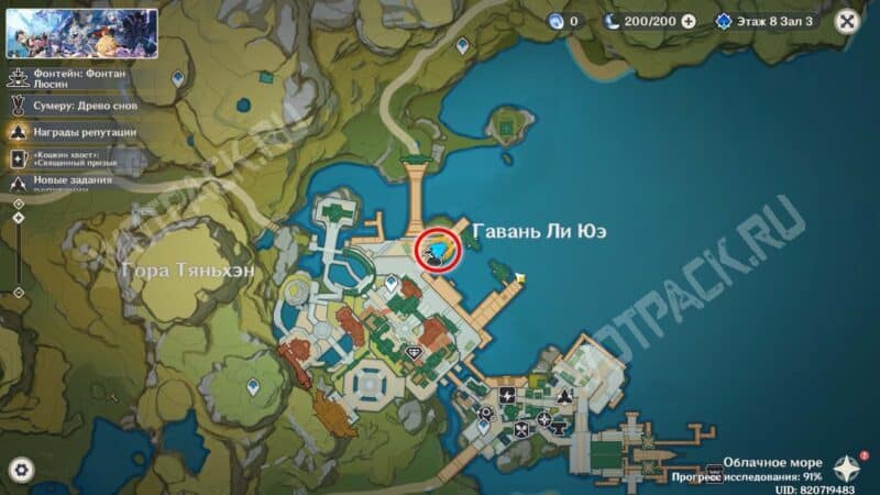 Пройдите через мост к ювелирному дому «Минсин» и развернитесь в сторону шатра «Синьюэ» — у колонны расположился искомый предмет.