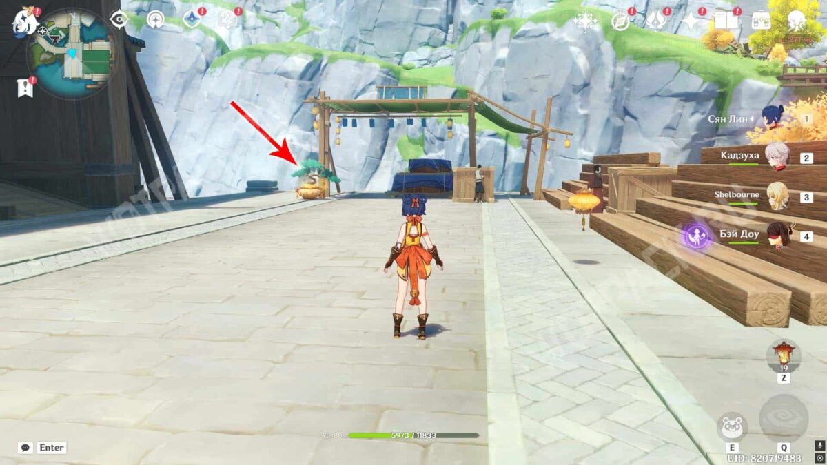 Следуйте от киоска Атая в небольшой проход слева. Затем посмотрите в сторону филиала Гильдии искателей приключений — у деревянной лестницы найдете горшок.