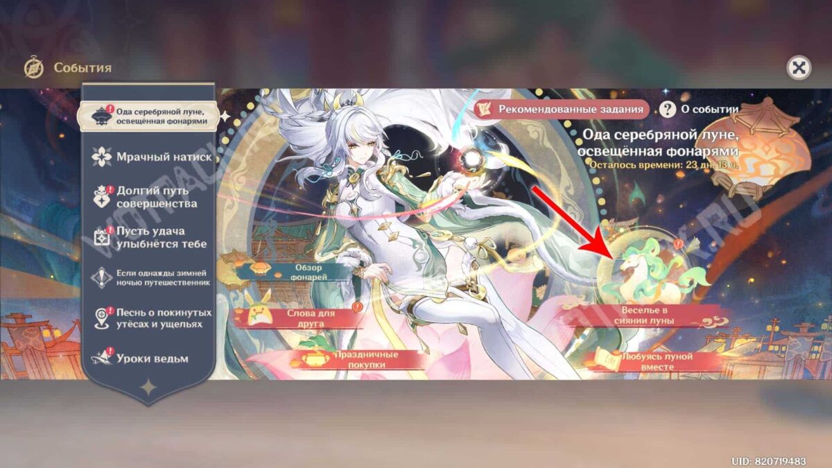 На вкладке события перейдите в раздел «Веселье в сиянии луны» и начните миссию «Свет фонарей в лунном сиянии».
