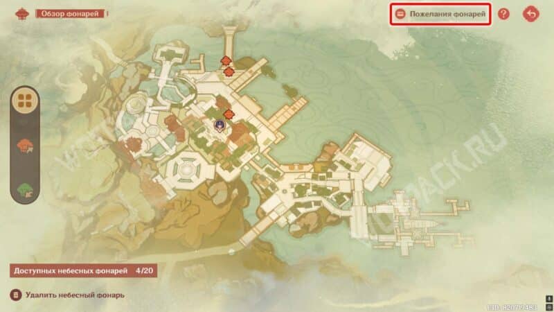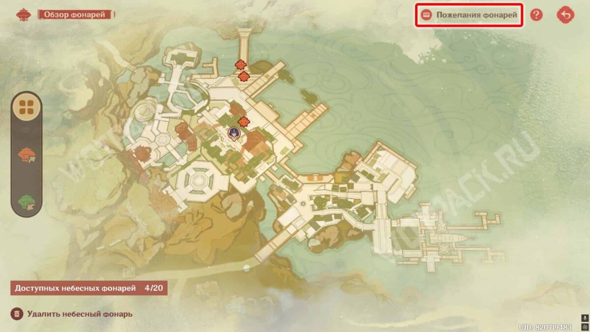 Если отправить пожелание в людном месте, то его оценят и жители города. Воспользуйтесь картой с семью удачными точками, чтобы заработать больше лайков за размещение фонарей.