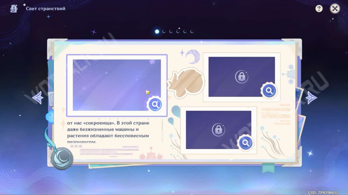 Прежде чем начать фотоохоту, пройдите небольшую миссию Дар воспоминаний. Паймон расскажет о ценной покупке и выдаст альбом для захватывающих снимков местности земли воров.