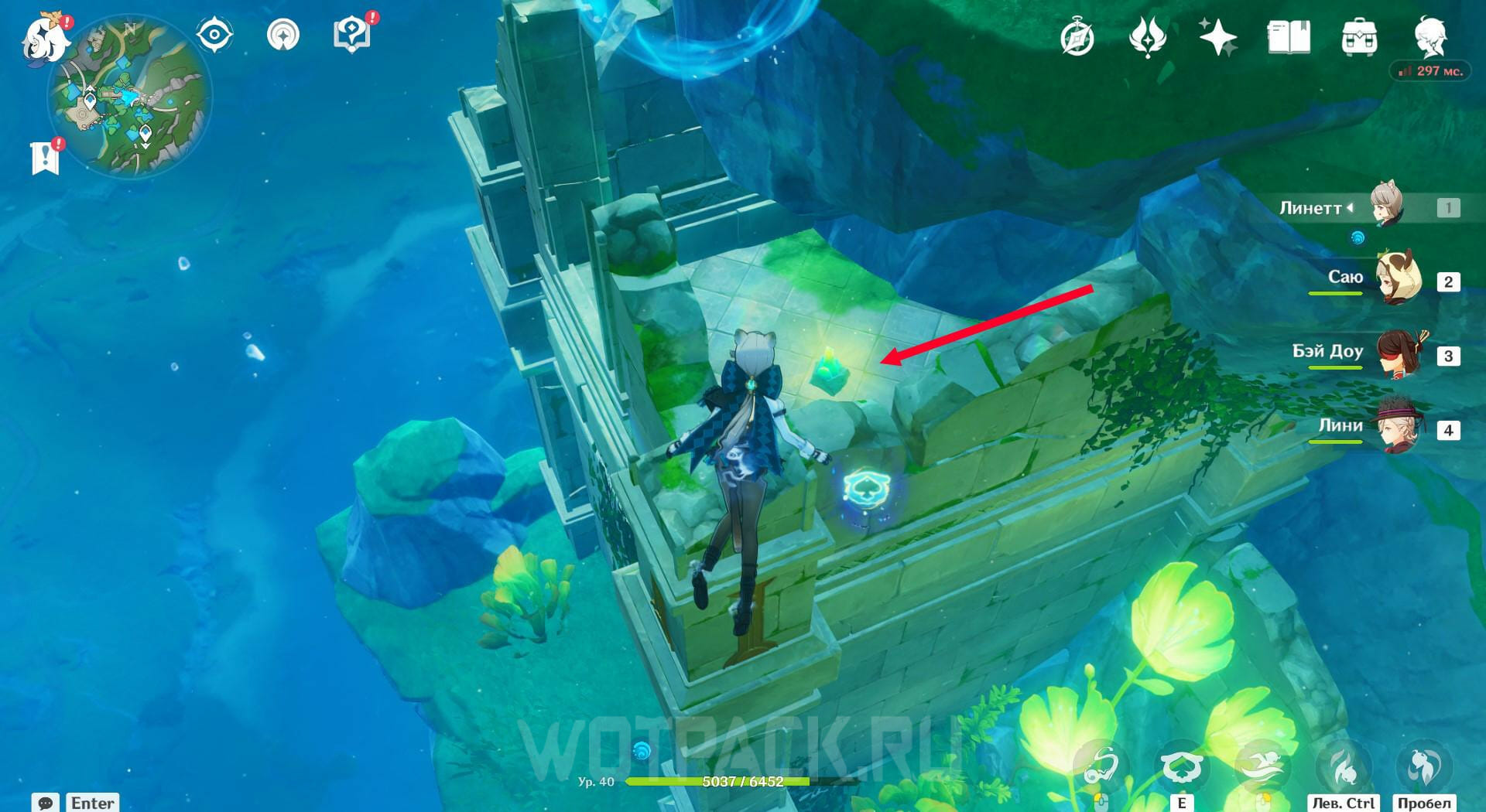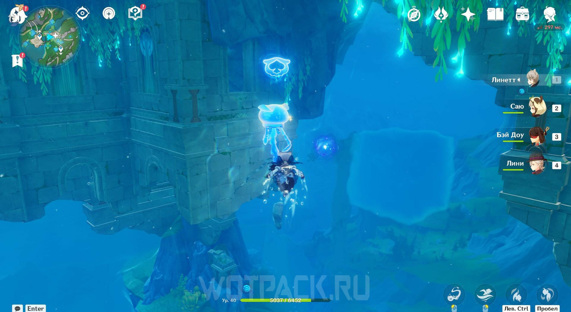 Завершая задание, покиньте пещеру по подводному каналу, в конце которого сможете получить руду. Вернуться в область, где плавает предмет, можно от Статуи Гидро Архонта, спрыгнув вниз на западе, и нырнув в дыру под водой. До окончания задания данное отверстие будет заперто.
