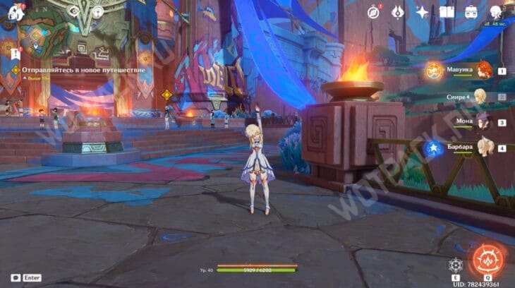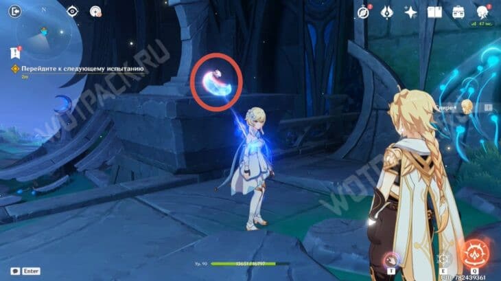 Переход к следующему этапу закроет доступ к свободному исследованию мира и отряду. Перед началом миссии рекомендуется выбрать Пиро Путешественника: эта стихия позволит быстрее завершить сражение с Гидро и Крио противниками, которые встретятся в дальнейшем.