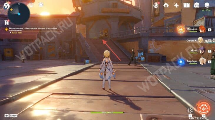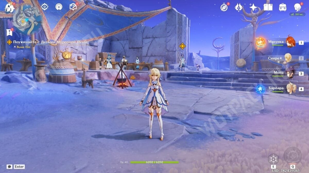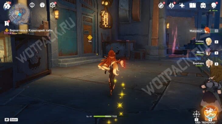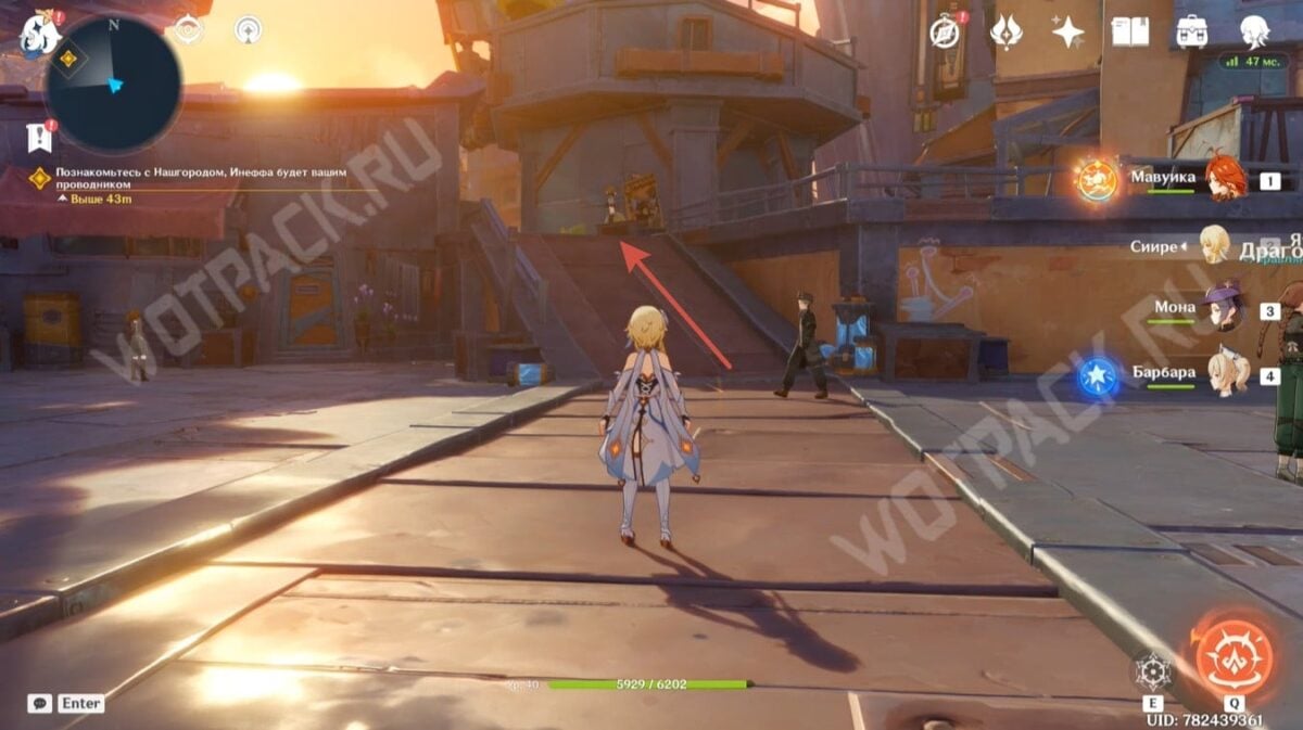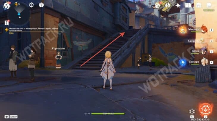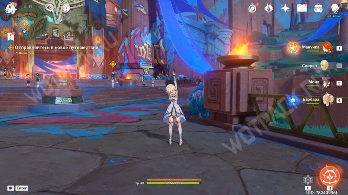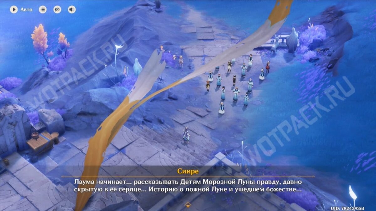 Вновь оказавшись на площади, впервые увидите жрицу Лауму. Как только поможете девушке разобраться с надменными Фатуи, получите от неё обещание о скорой встрече.