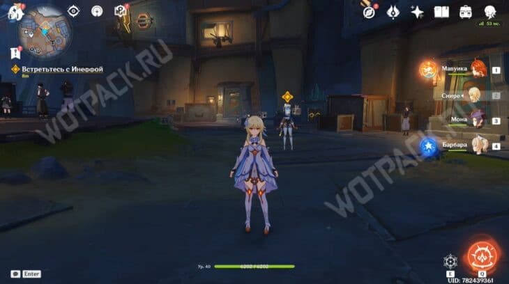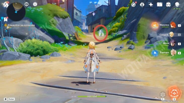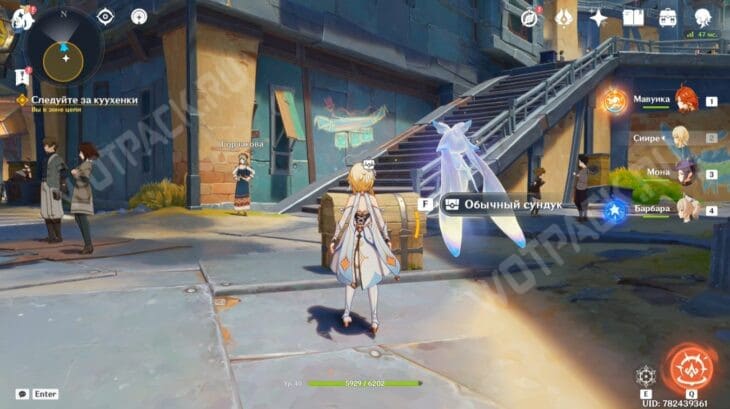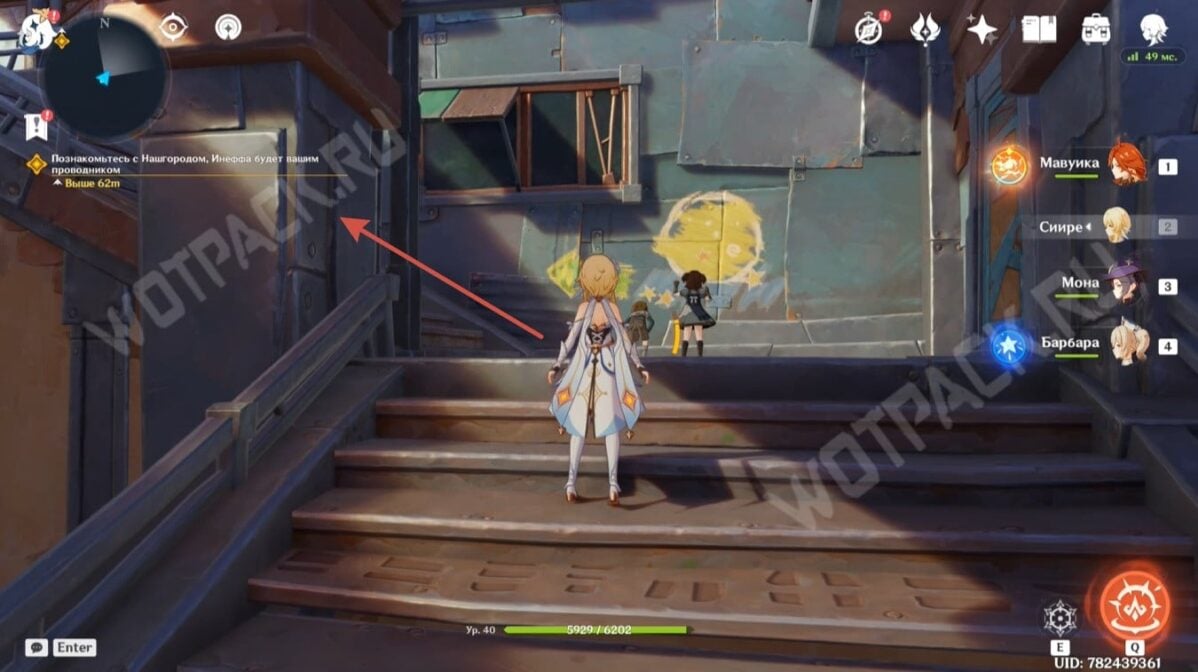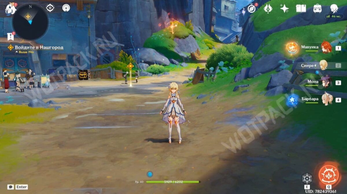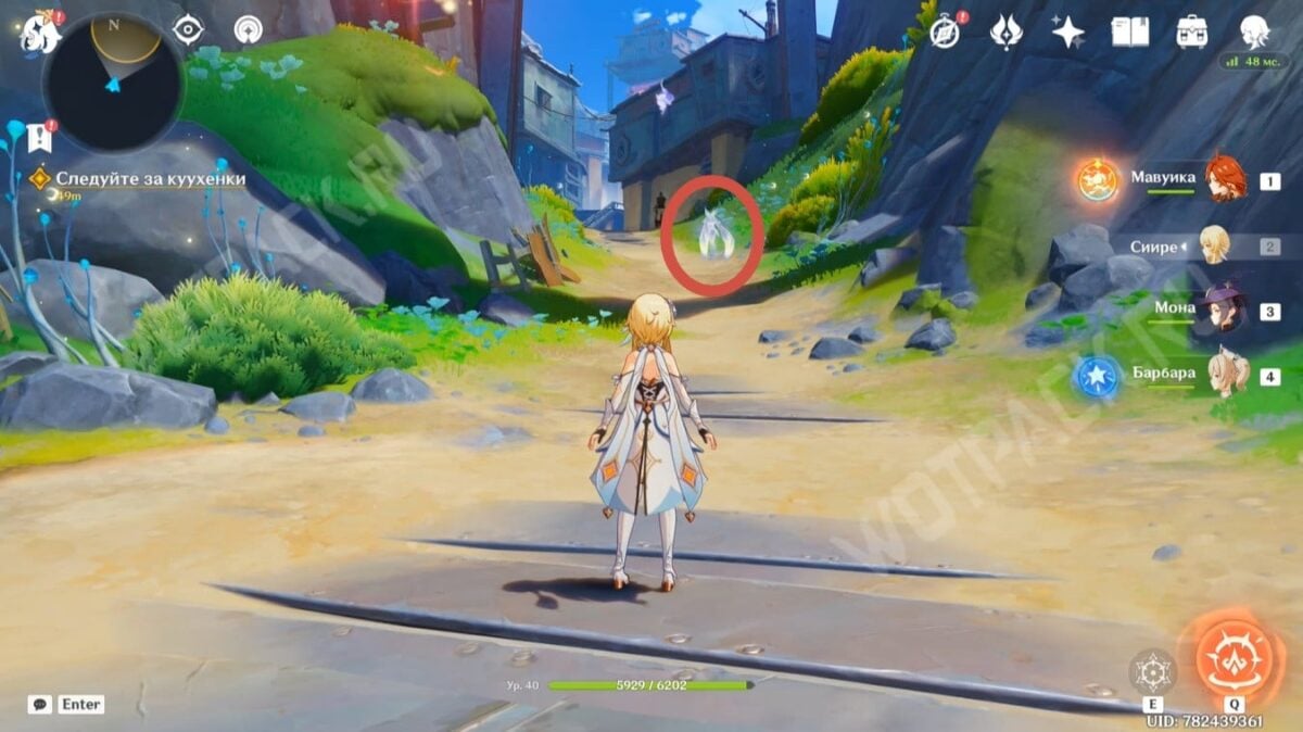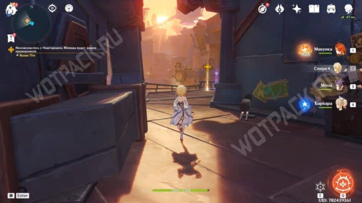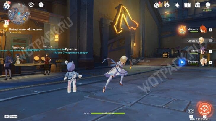 Вновь оказавшись на площади, впервые увидите жрицу Лауму. Как только поможете девушке разобраться с надменными Фатуи, получите от неё обещание о скорой встрече.