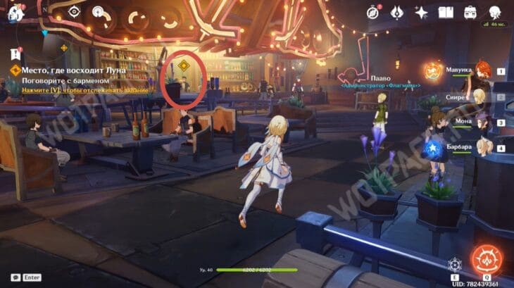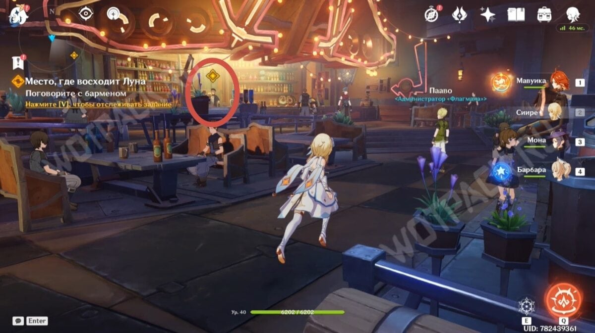 Спуститесь вниз к главной двери, ведущей в заведение. Среди посетителей мужчины не окажется, поэтому подойдите к бармену и поинтересуйтесь, не захаживал ли сюда старый знакомый. Хозяин объяснит, что Варка отправился в северную часть региона, чтобы разобраться с непредвиденными обстоятельствами.