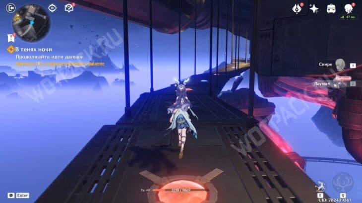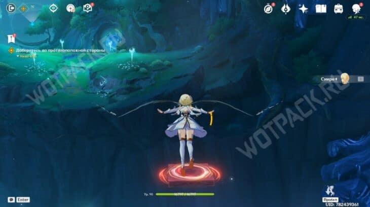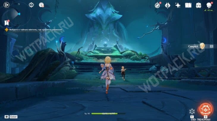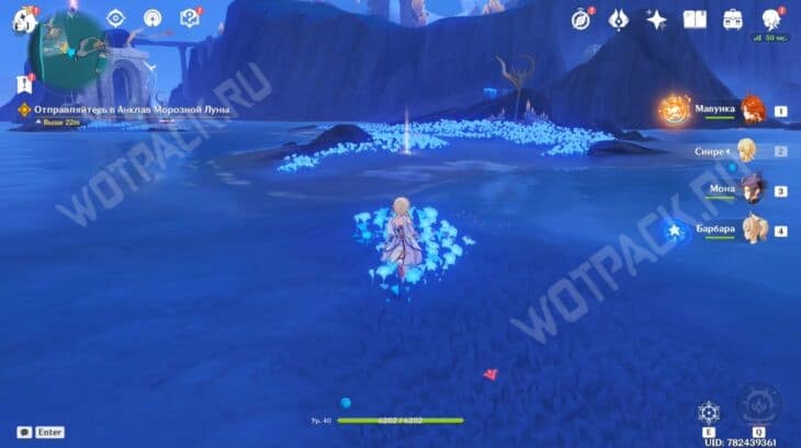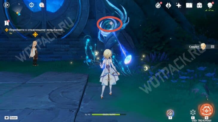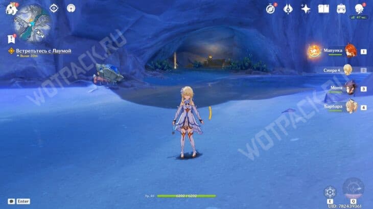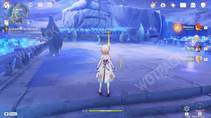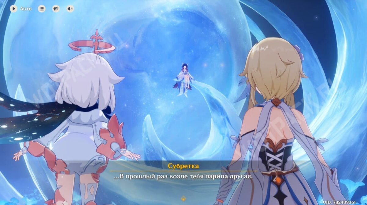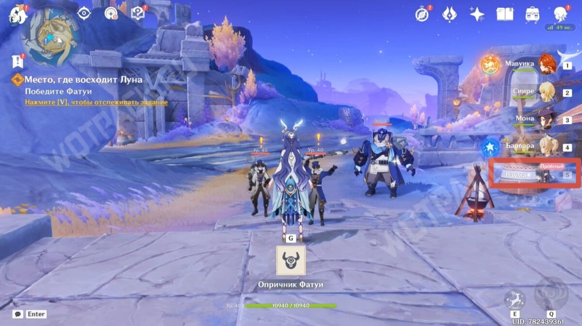 Далее активируется особый сюжетный режим, в котором отряд будет состоять только из пробной жрицы Лаумы и прокаченного Гидро Путешественника. Следующий этап по времени займёт не менее 1 часа.