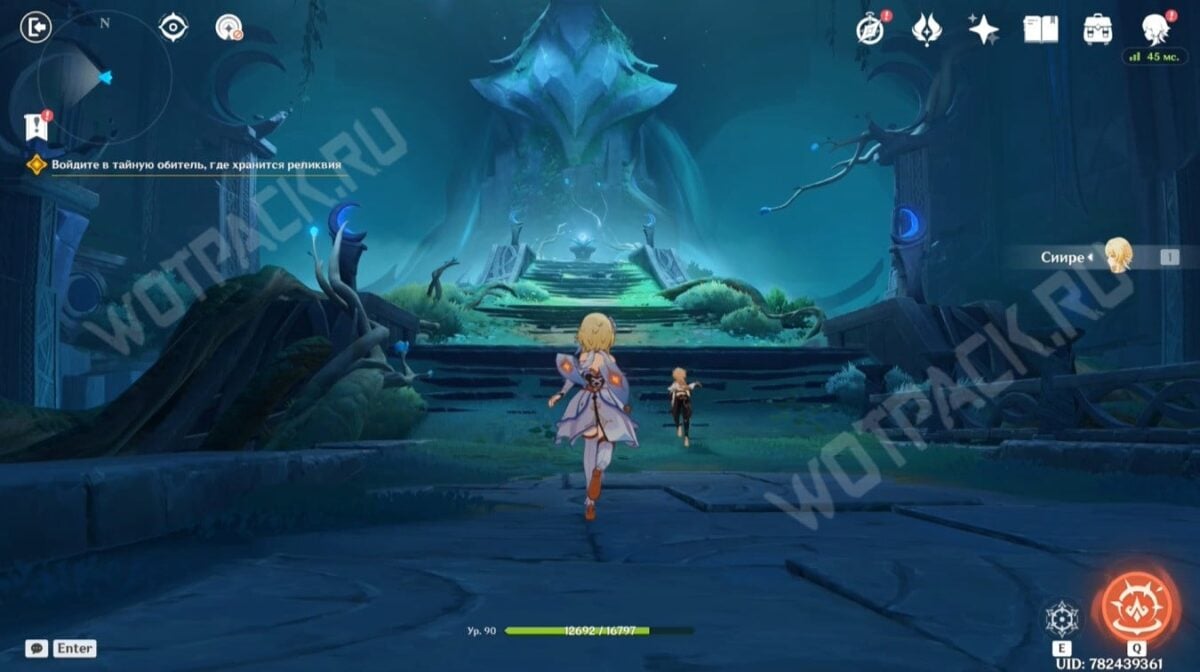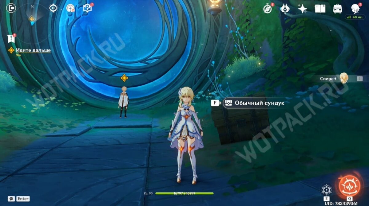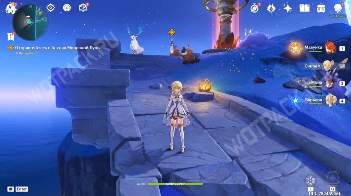 Дернув за рычаг, откроете доступ к секретной зоне, спрятанной за толщей воды. Спуститесь ниже, чтобы изучить фрагмент Праха Древней Луны. По завершении команду обнаружит Вилемина, укравшая реликвию, покинувшая клан и присоединившаяся к Фатуи.