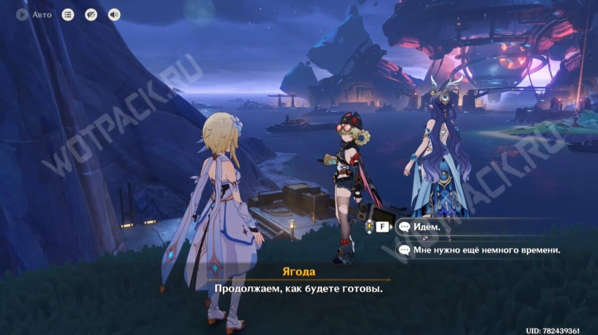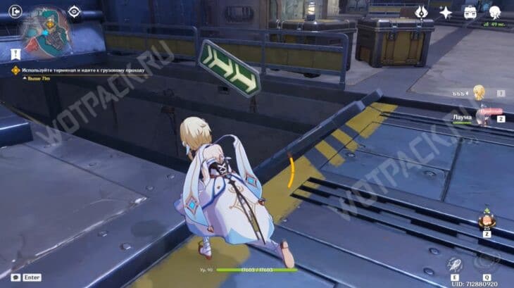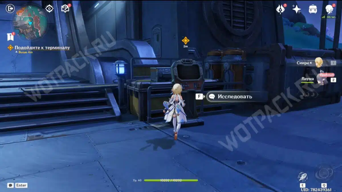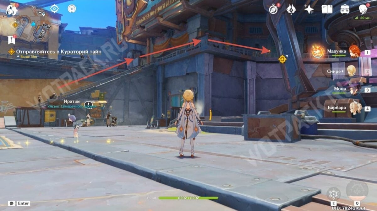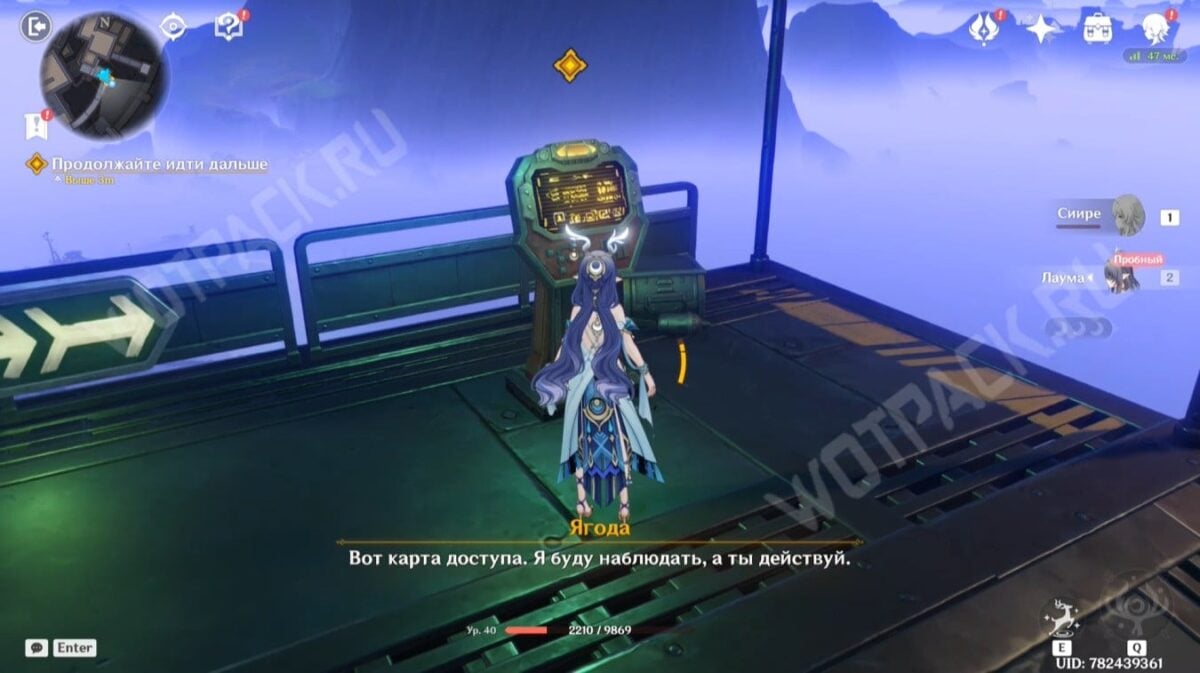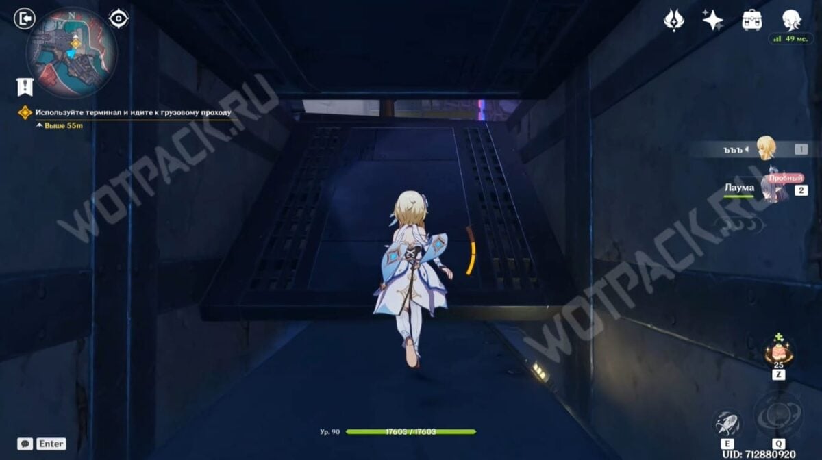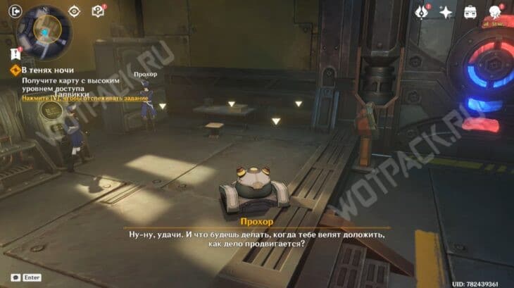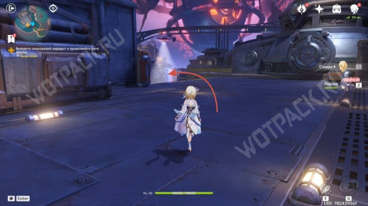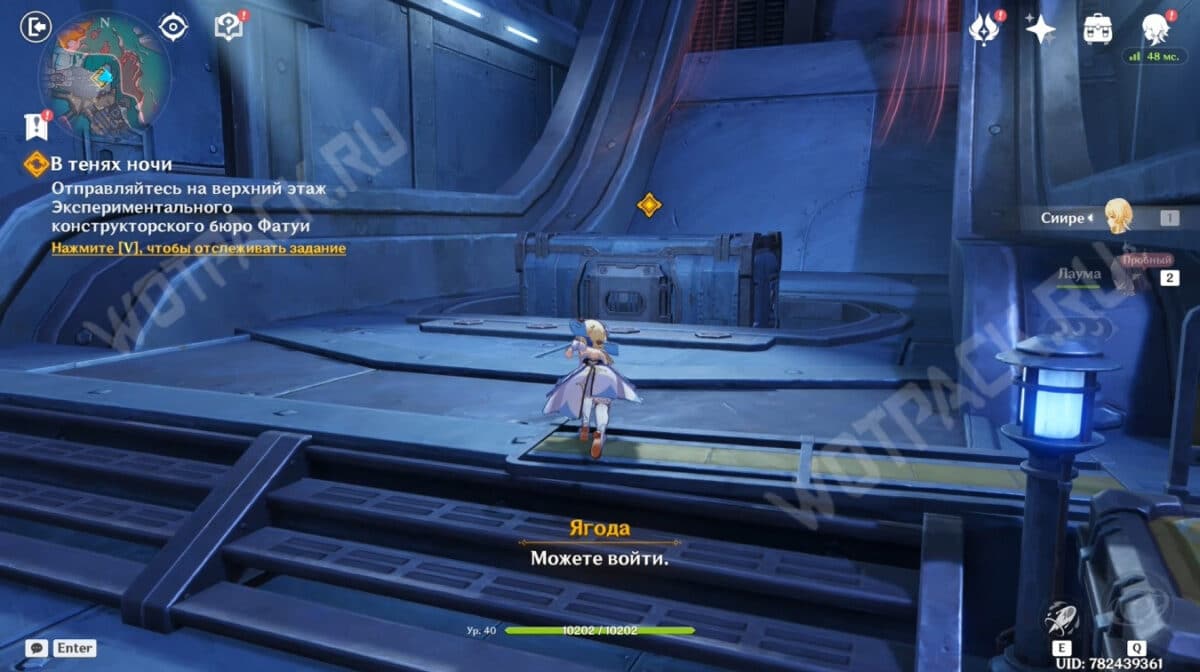 Когда будете готовы, поговорите с проводницей, использовав реплику «Идём» для запуска миссии, и проникните в Экспериментальное конструкторское бюро Фатуи.