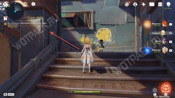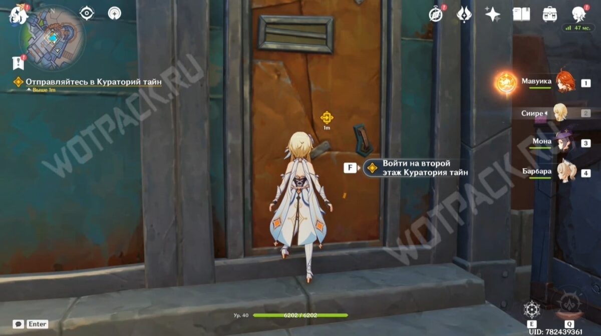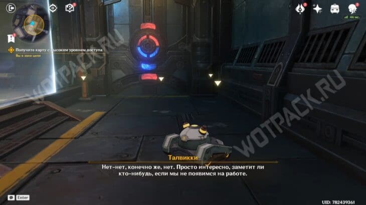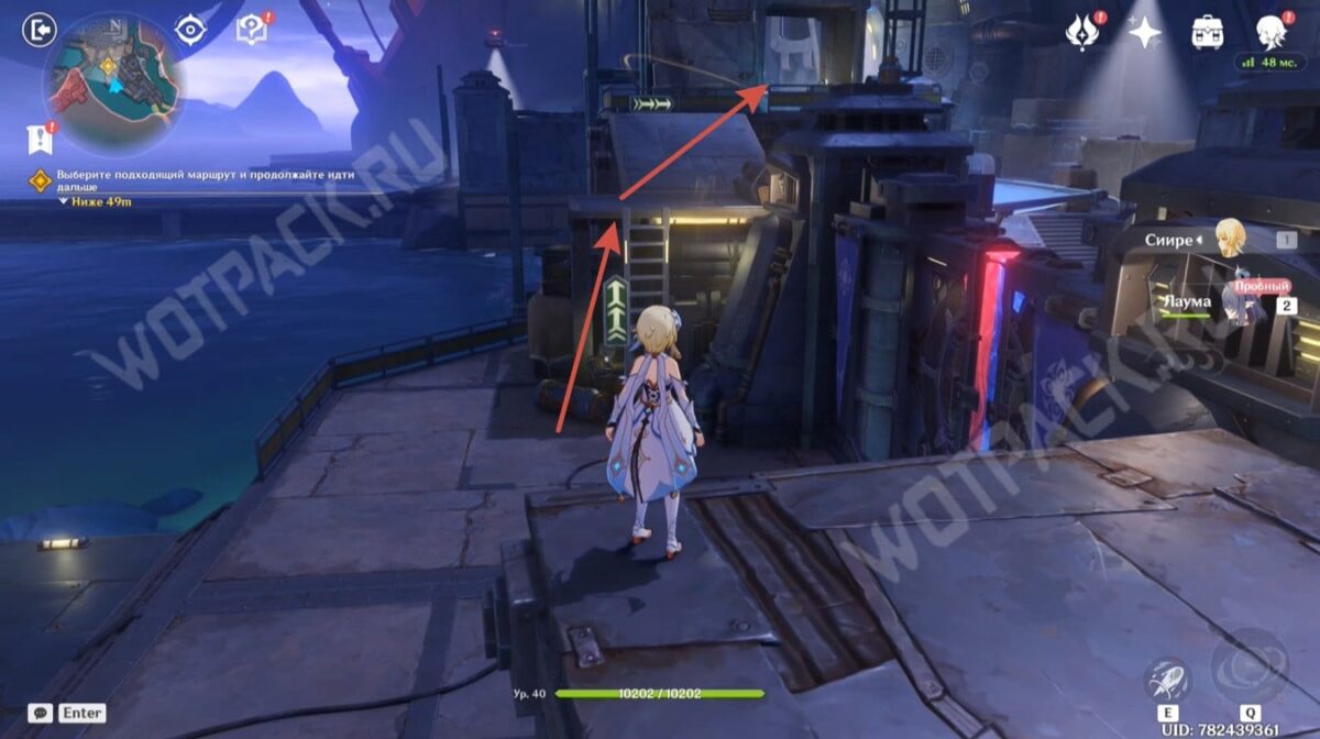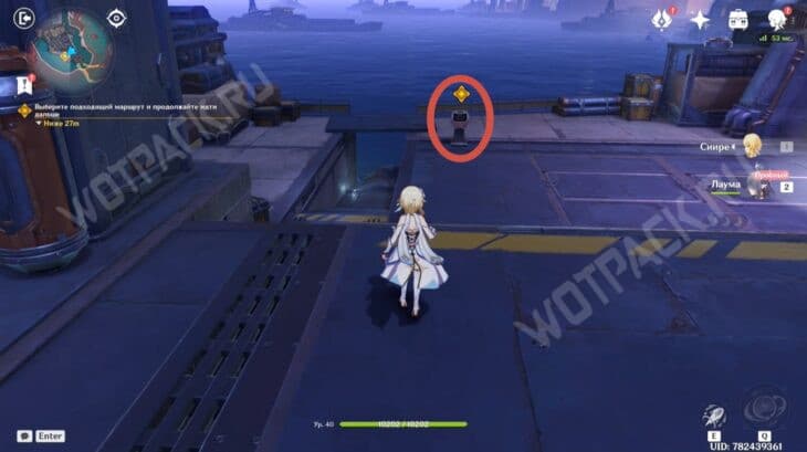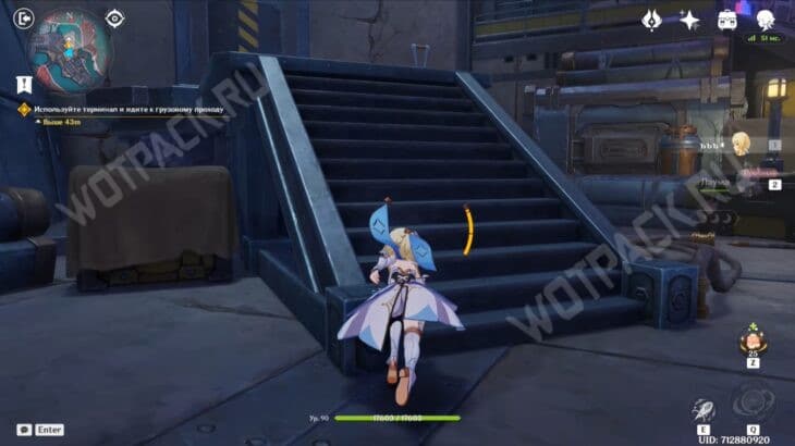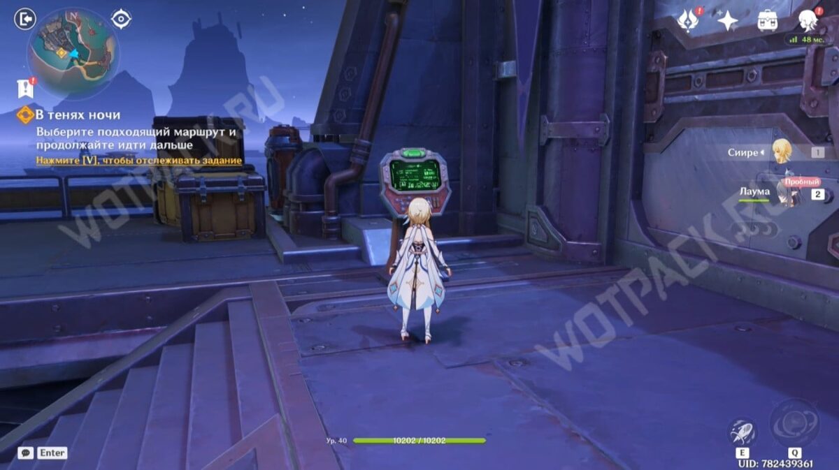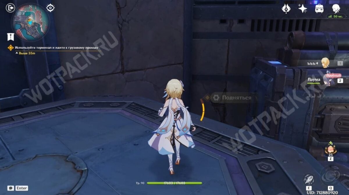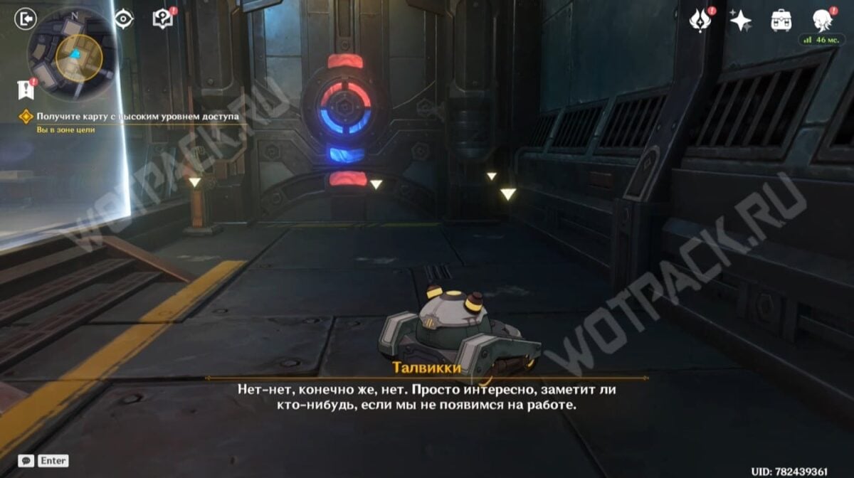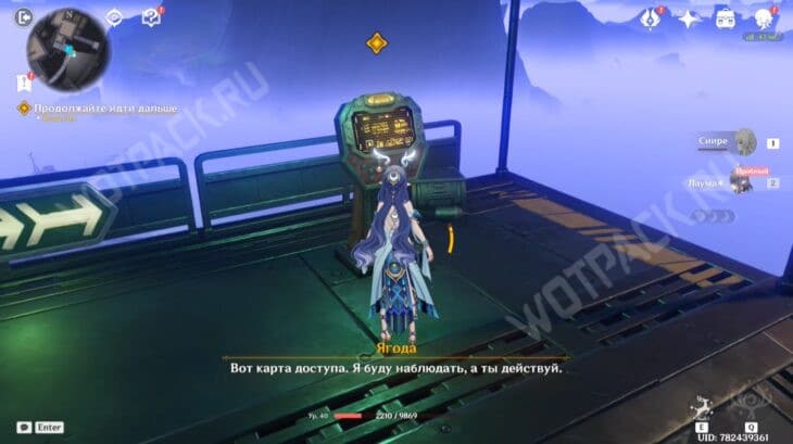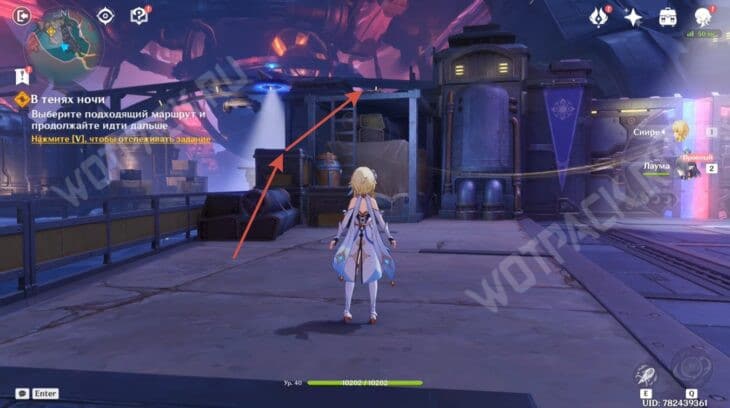 Когда будете готовы, поговорите с проводницей, использовав реплику «Идём» для запуска миссии, и проникните в Экспериментальное конструкторское бюро Фатуи.