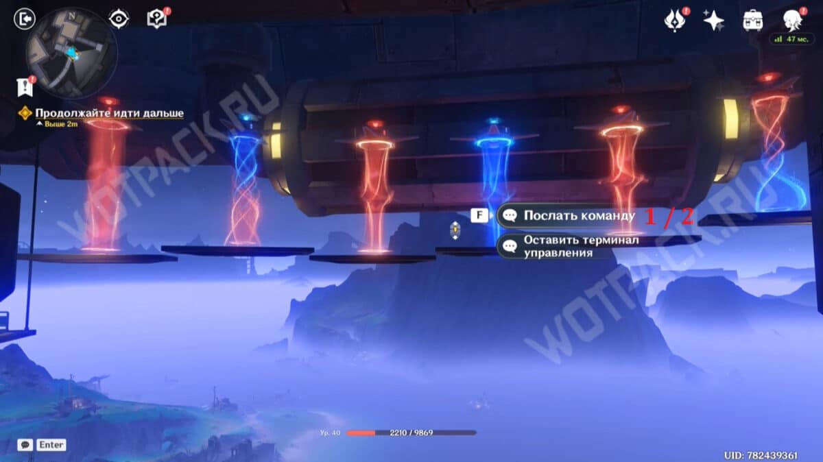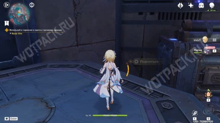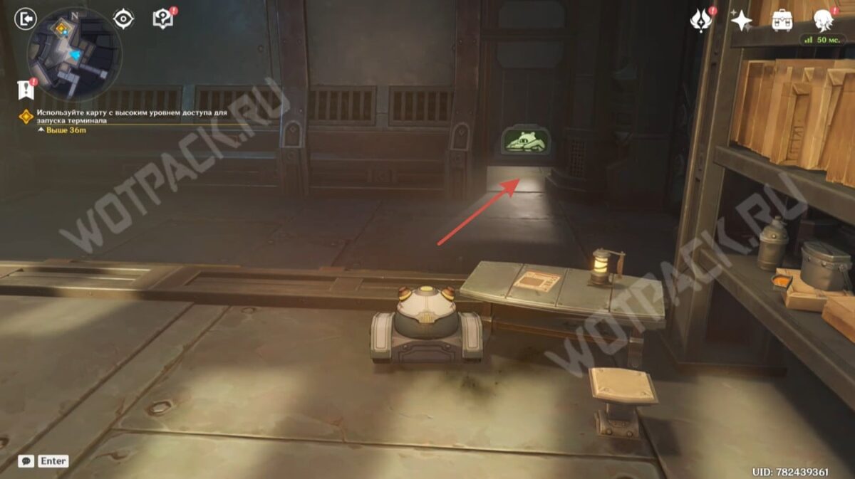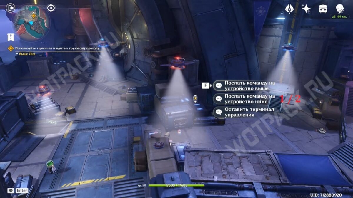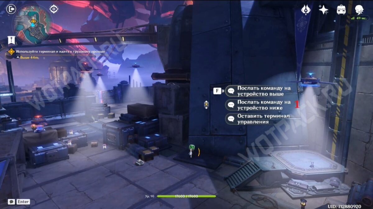 Используйте аппарат и снова выберите «Послать команду на устройство ниже», но теперь лишь один раз. Если хотите забрать обычный сундук, смотрите специальную статью. Затем пройдите к подъёмнику и поднимитесь на верхний этаж.