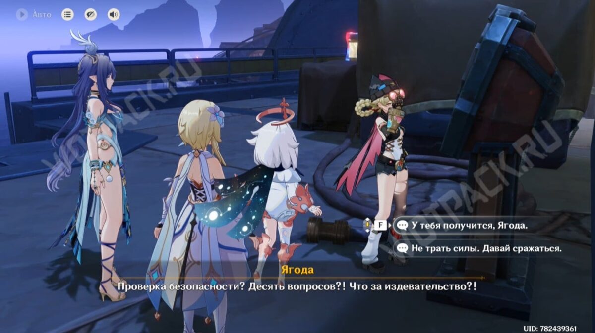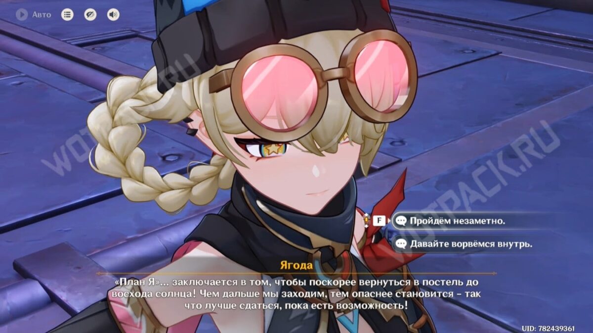 Ягода кратко объяснит цель предстоящей вылазки — проникнуть в Экспериментальное конструкторское бюро Фатуи и найти реликвию, которая была украдена.