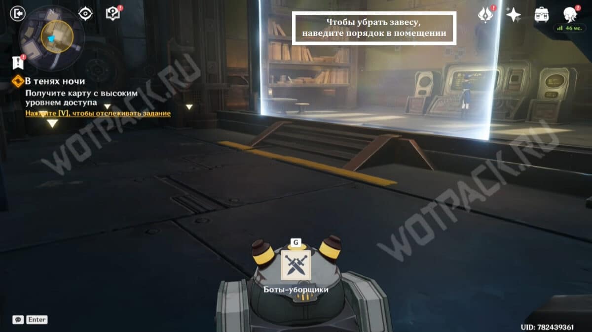 Следуя указаниям Фатуи, продолжайте заниматься уборкой до тех пор, пока не разблокируете выход из помещения.