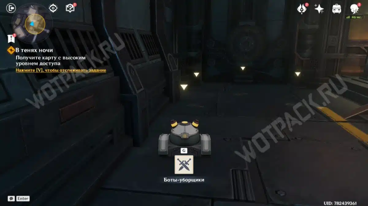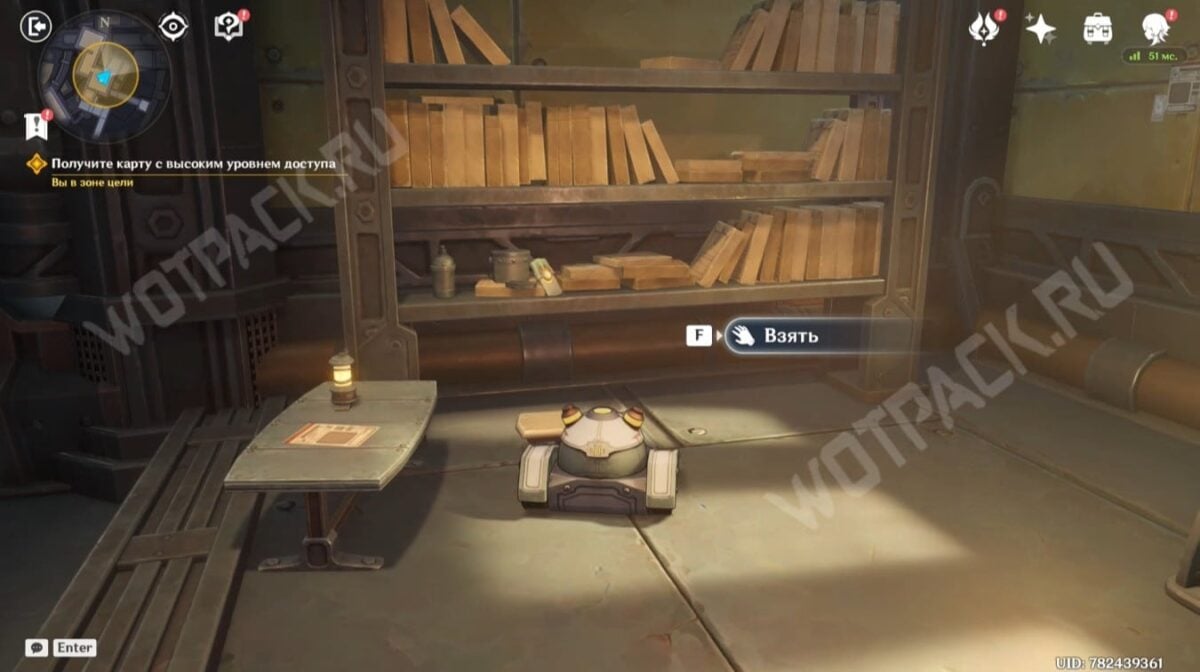 Помощница покажет карту доступа, которая позволит управлять терминалами, отвечающими за внутреннюю безопасность объекта. Взаимодействуйте с первым устройством, откройте ворота и пройдите вглубь области, к следующему прибору.