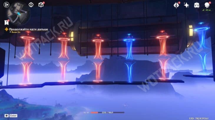 Идите дальше, пока не доберётесь до обрыва и головоломки, связанной с работой куувяки и притяжением/отталкиванием красных и синих силовых полей. Чтобы решить загадку, выполните следующие действия: