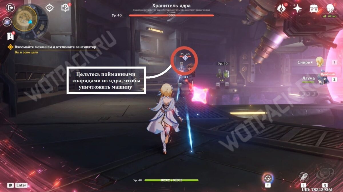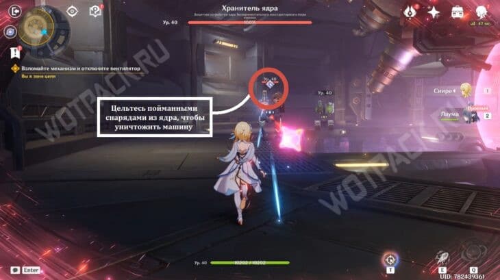 Двигайтесь дальше, пока не выйдите к Защитному устройству ядра, Хранителю ядра.