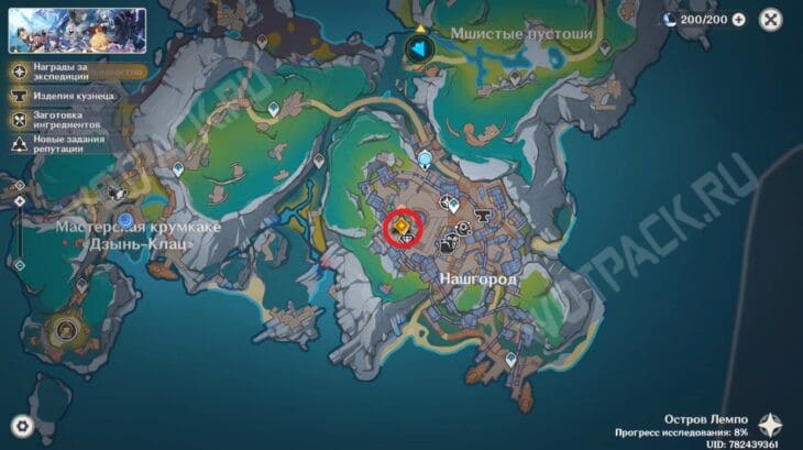 В юго-восточной части от «Флагмана» будет располагаться лавка, принадлежащая госпоже Сангема-бай. Торговка поделится, что цели Фатуи связаны с Прахом Древней Луны. Во время диалога удастся узнать подробности о других немаловажных вещах: