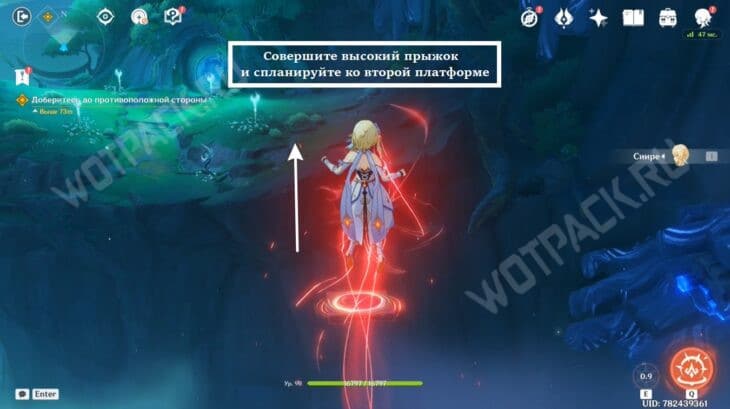 - Вновь используйте «Пробел», чтобы прыгнуть и долететь до нужной стороны священного подземелья.