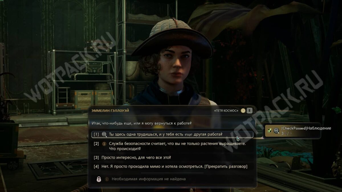 Реплика Наблюдения доступна только при первой встрече с начальницей теплицы: