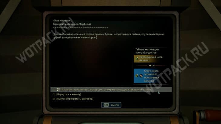 Следуйте на запад от ратуши к складу с боевой экипировкой и техникой. Стереть данные о спектральной водке получится с помощью Ключ-карты терминала пополнения запасов, она лежит на коробке у входа в коморку. Чтобы незаметно воспользоваться пропуском потребуется отвлечь старшего специалиста Кардоса.