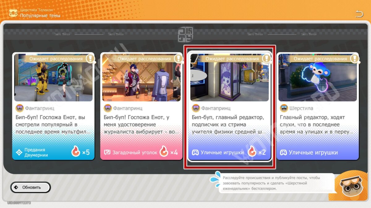 Отслеживать местонахождение таксофонов можно через соответствующую запись в «Популярных темах» Шерстяки Телеком. Нажав на публикацию Фантапринца с пометкой «Уличные игрушки» сможете ознакомиться с предложением и отправиться на расследование. Заняться поиском автоматов можно и самостоятельно, тогда задача редакции выполнится автоматически.