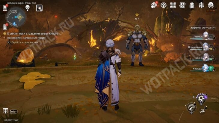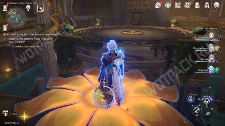 Освободив когницвет, запустите киот молитв, чтобы усилить способность Оронис. Затем встаньте на необычное растение и воздействуйте на него силой времени — это действие позволит продолжить путь по Сияющему шраму. По дороге придётся сражаться с отголосками воспоминаний, на которых оказало влияние чёрное течение.