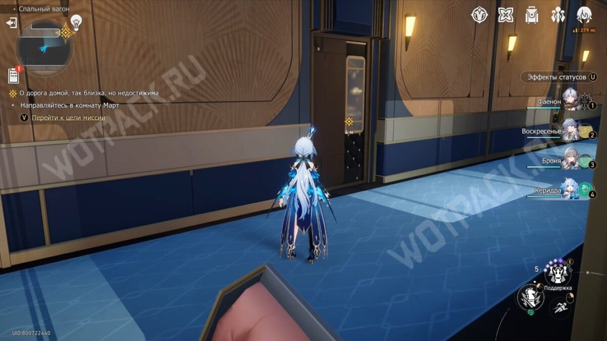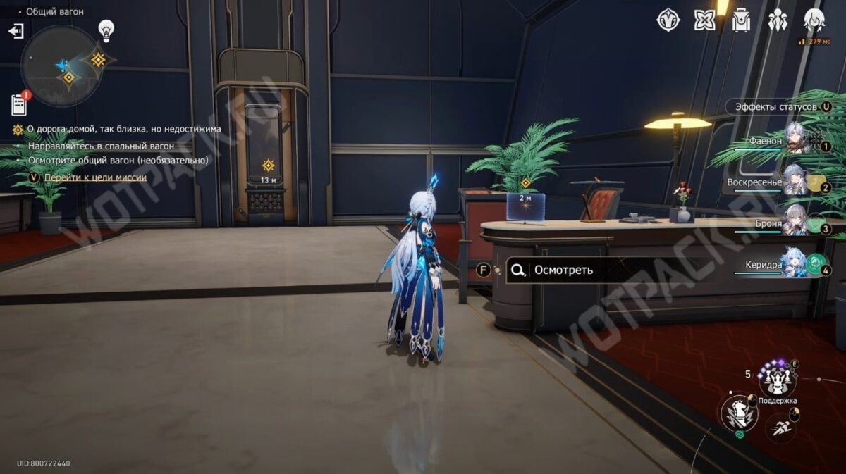 Страж Дань Хэн возвращается на «Звёздный экспресс»: он слышит голос наставницы Химеко, но не может установить с ней чёткую связь. Осмотрите общий вагон, а после направляйтесь в спальный вагон, чтобы стать свидетелем разговора между владелицей поезда и хранительницей воспоминаний Чёрным Лебедем. Заметите, что в активных обсуждениях не принимает участие дорогая подруга.