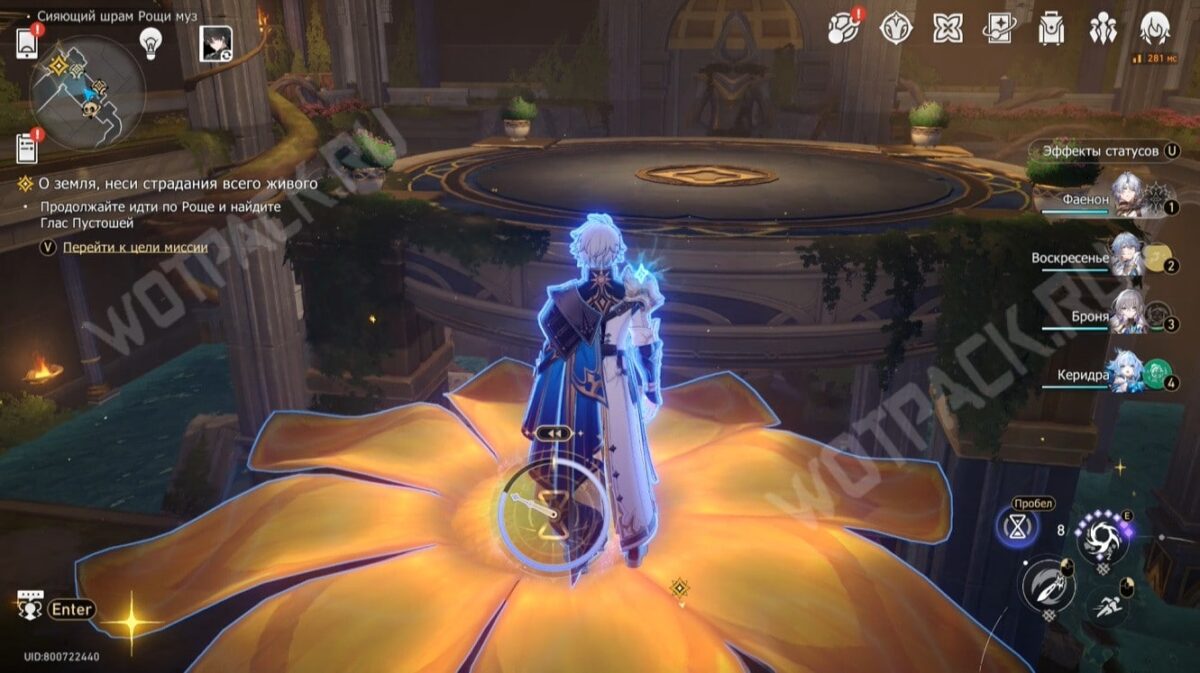 Освободив когницвет, запустите киот молитв, чтобы усилить способность Оронис. Затем встаньте на необычное растение и воздействуйте на него силой времени — это действие позволит продолжить путь по Сияющему шраму. По дороге придётся сражаться с отголосками воспоминаний, на которых оказало влияние чёрное течение.