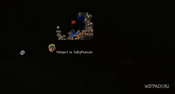 Чтобы использовать зелье червоточины, необходимо находиться в многопользовательской игре хотя бы с одним человеком на карте. Открыв инвентарь, нажмите на флажок любого цвета (слева от слотов брони), чтобы присоединиться к команде товарища. Теперь откройте карту: союзник отмечен цветом выбранного отряда и по нему можно нажать, чтобы переместиться.