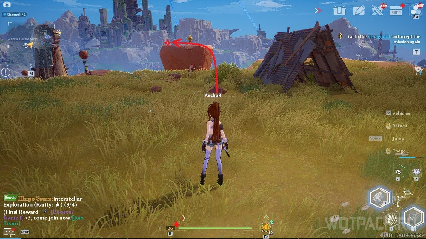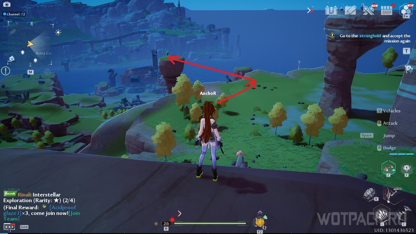 Телепортируйтесь в Astra Omnium Tower. Искомая точка находится недалеко от территории Football Field. Поверните направо и парите на северо-запад в место направления красной стрелки на скриншоте, постепенно спускаясь. Живописное место расположено перед футбольным полем.