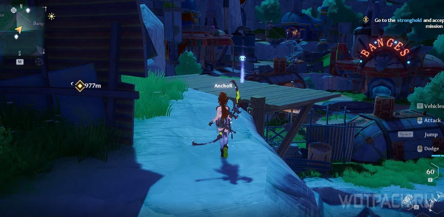 Отправляйтесь к телепорту в городе Banges Dock и поднимитесь наверх по скале к дороге. Точка обзора находится на сломанном мосту над дорогой – с левой стороны. Поднимитесь туда с помощью джетпака.
