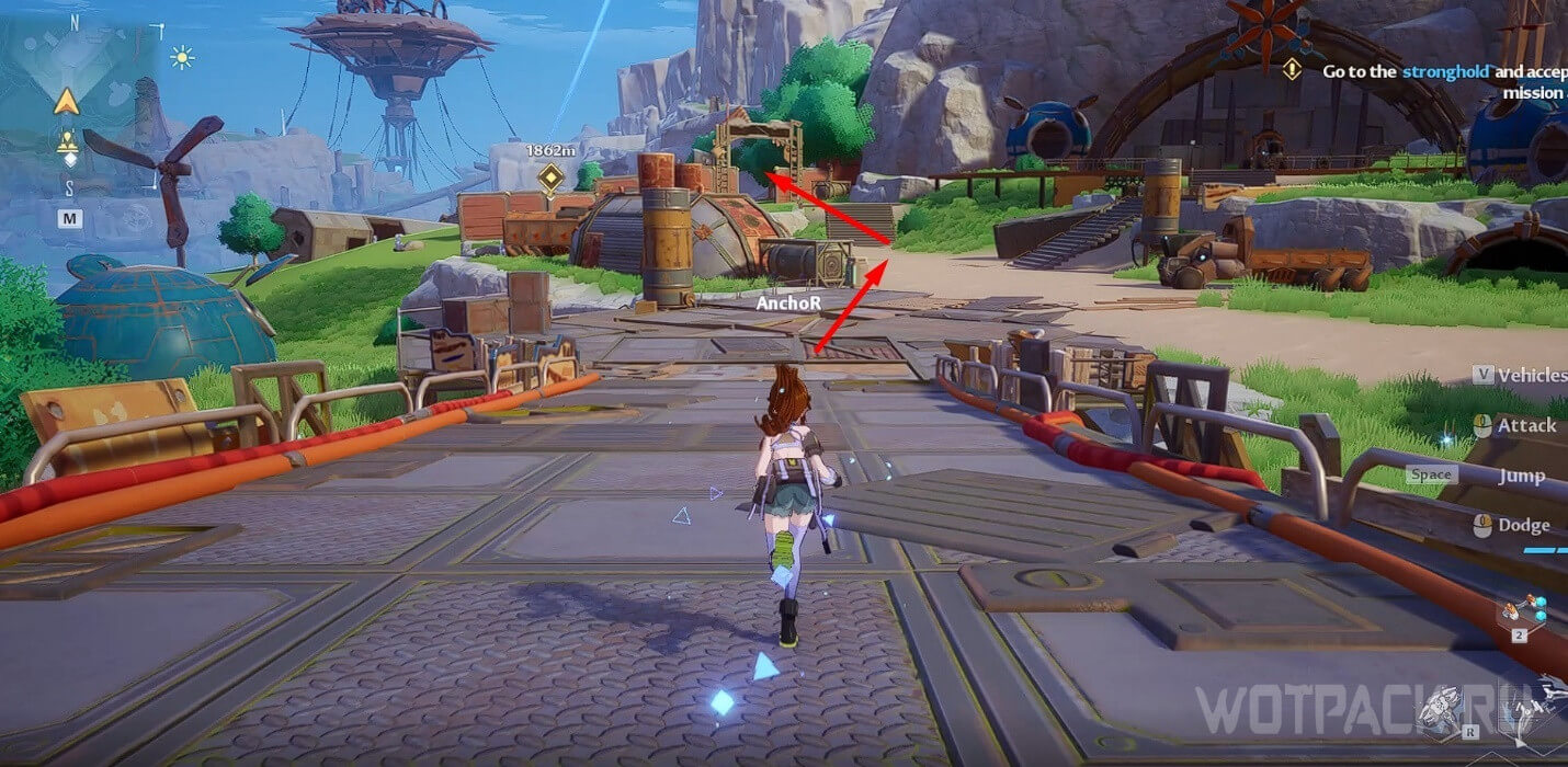 Переместитесь к телепорту под Ржавым Железным лагерем [Rusty Iron Camp] и бегите по тропинке на север. У безымянного дирижабля сверните налево, чтобы обнаружить первую точку обзора.