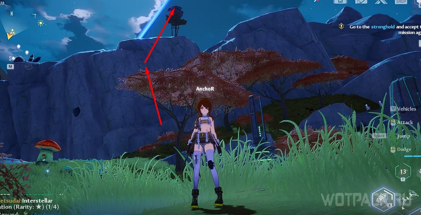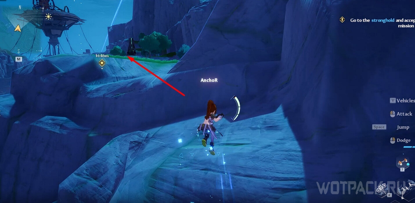 Переместитесь к космическому лифту Spacerift: Aarniel Fortress и двигайтесь на юго-восток к огромному ледяному склону. Заберитесь на него или обойдите по правой стороне и следуйте прямо до ближайшего лагеря с противниками — также придется пройти мимо двух круглых красных зданий справа. Обзорная точка расположена на краю выступа.