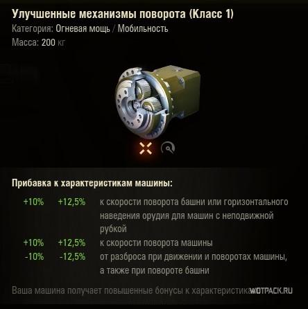 Учитывая универсальность Объекта 268/4 на нем интересно будет смотреться «Турбонагнетатель». А можно вообще улучшить маневренность и стабилизацию в движении за счет «Улучшенных механизмов поворота»: