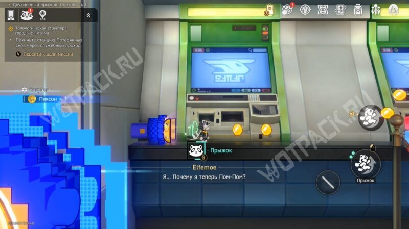У выхода увидите толпу восторженных фанатов. Обратитесь за помощью к начальнику станции Мяуке и пройдите к служебному проходу «Двухмерный прыжок! Сложность 1». Так попадёте в Рисованный мир, где нужно собирать пиксоны и преодолевать различные препятствия: