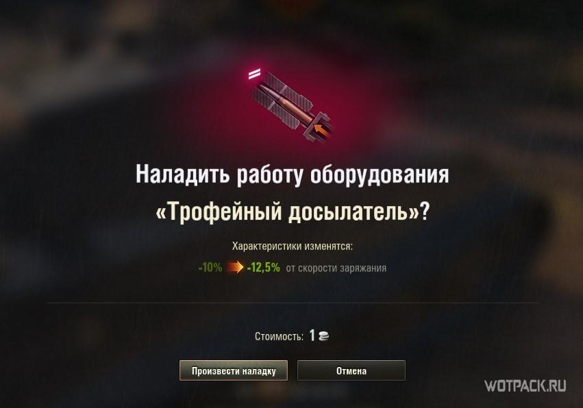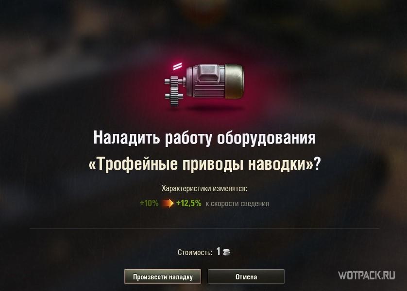 Ключевое отличие от бонового — возможность снимать за 10 голды или при помощи демонтажного набора. Напомним, что боновое не только дорого стоит, но и снятие обойдется в 200 бон. Поэтому трофейное можно чаще переставлять с танка на танк.