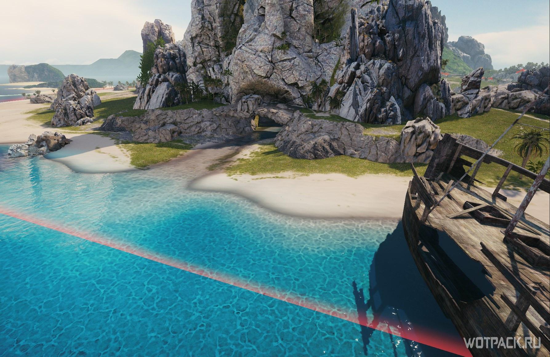 На этом участке береговой линии за горами, прекрасно закрывающими от прострелов САУ сойдется в противостоянии тяжелобронированная техника. Здесь имеется несколько надежных опорных позиций с возможностью проезда, что делает это направление интенсивным с точки зрения геймплея.